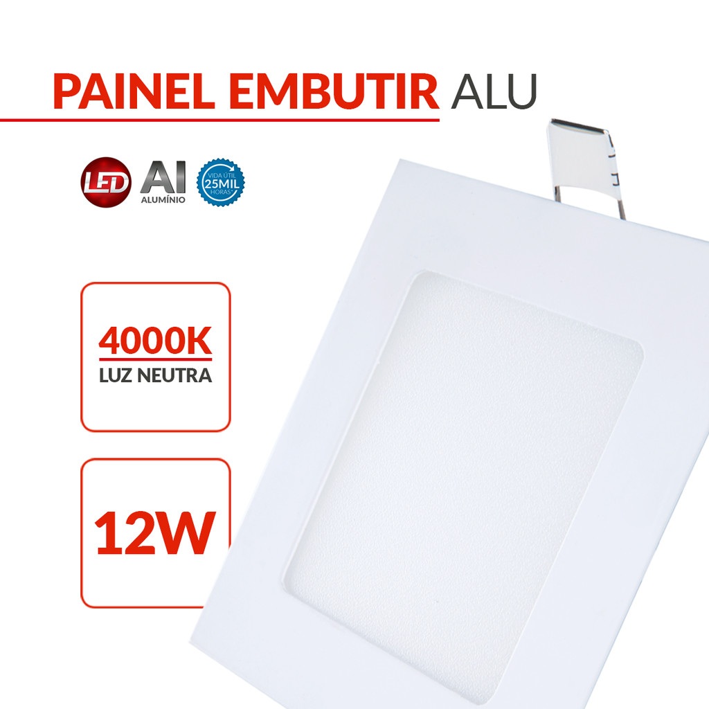 Painel Plafon Led Alu 12w 4000k Emb. Quadrado 110v/220v 17cm Avant