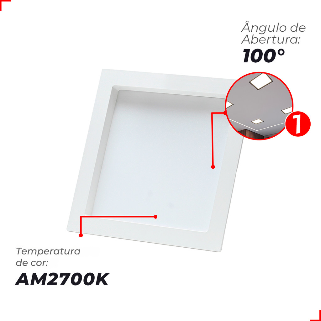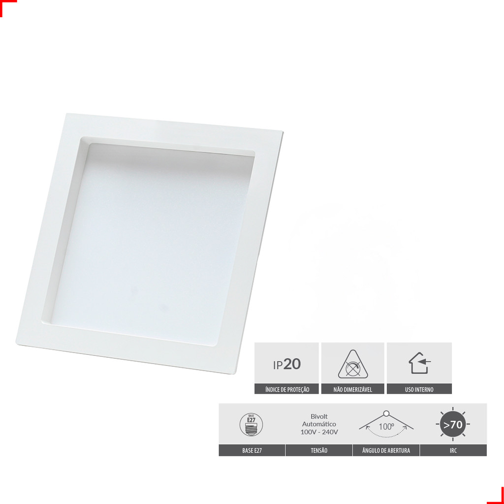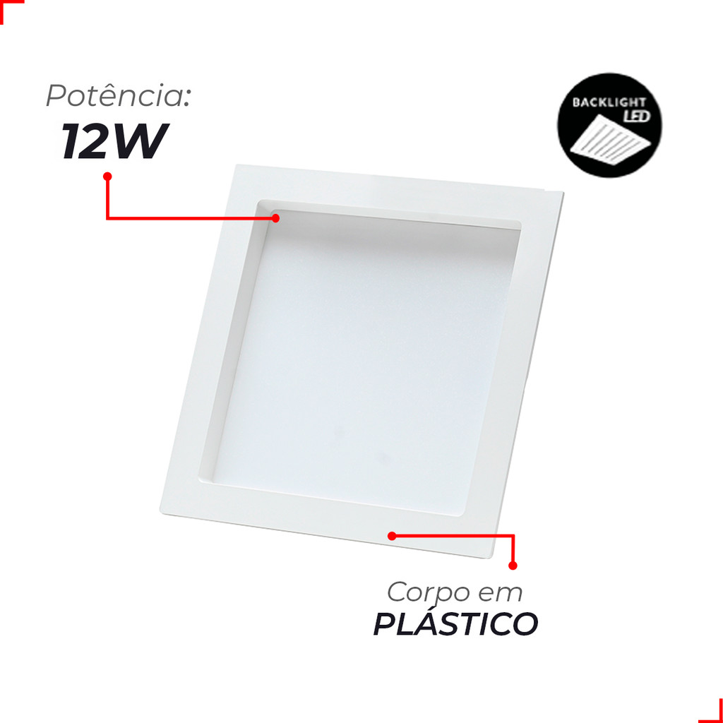 Painel Led Recuado 12w Quadrado 2700k Comfort Branco Quente 17cm 110V/220V Bivolt Branco Fosco Cód: 908050375 - Deluxe