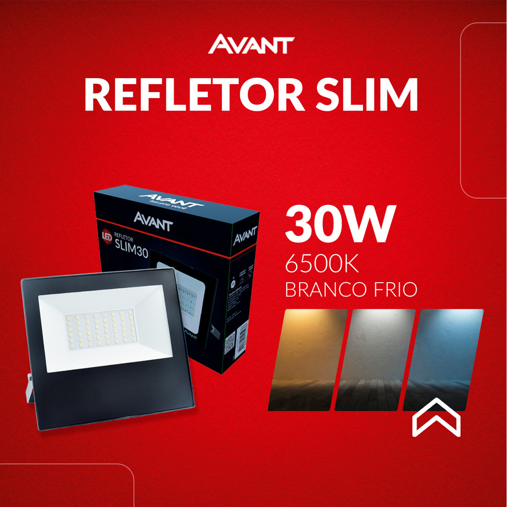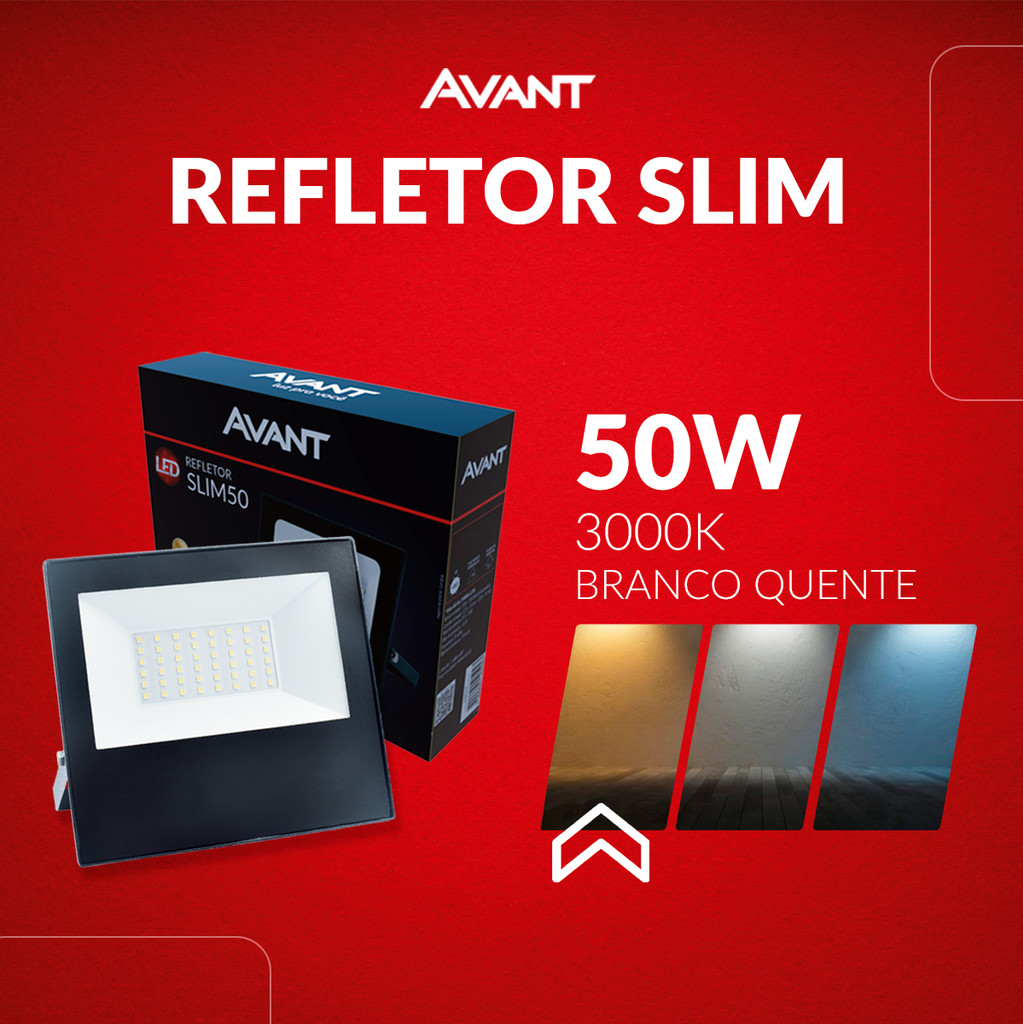 Refletor Led Slim 10w 20w 30w 50w 3000k a 6500k Branco Quente Neutro e Frio Ip65 110v/220v Bivolt Avant
