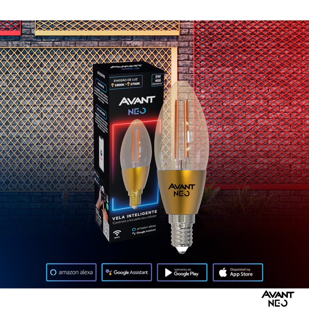 Lâmpada Decorativa Inteligente Vela E14 Smart Wifi 5w 1800k-2700k Avant Neo
