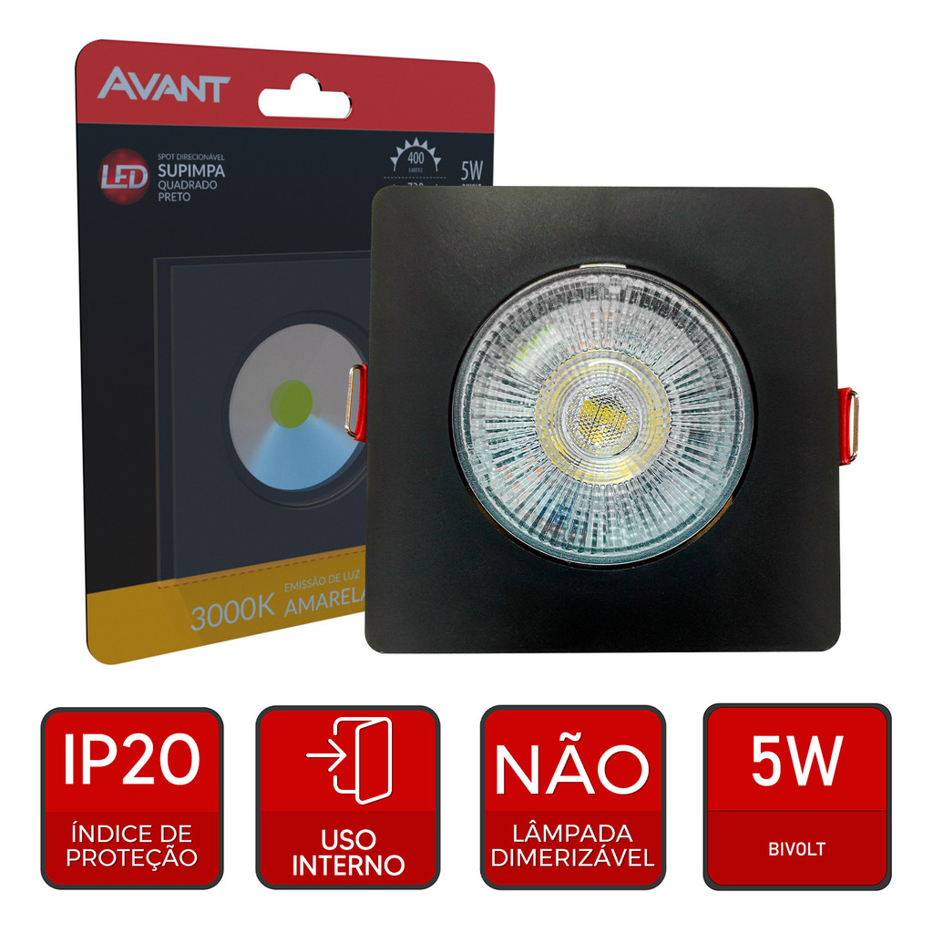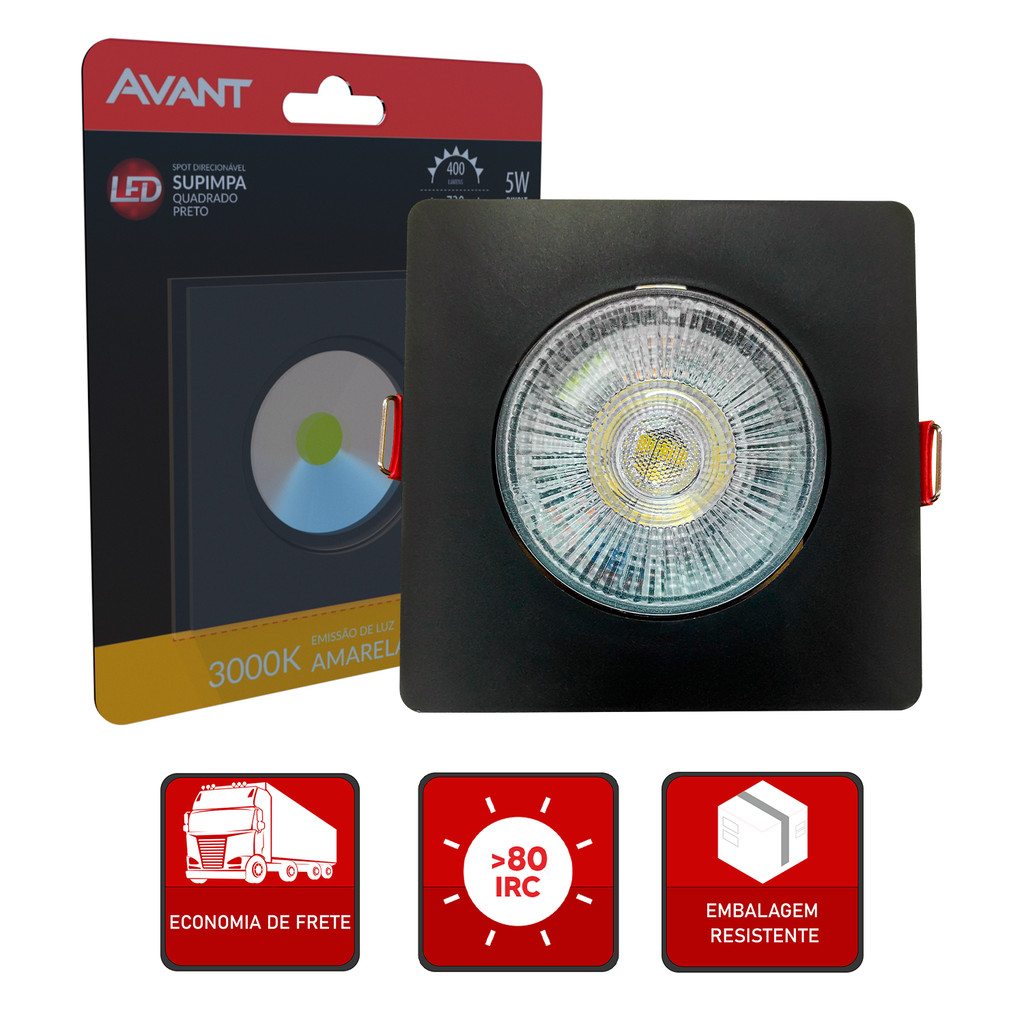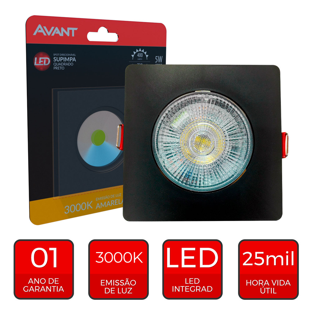 Spot Led Authentic Emb. Quadrado 5w 3000k 9cm PF Avant