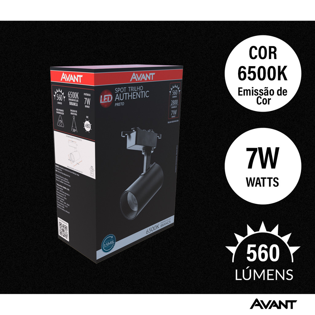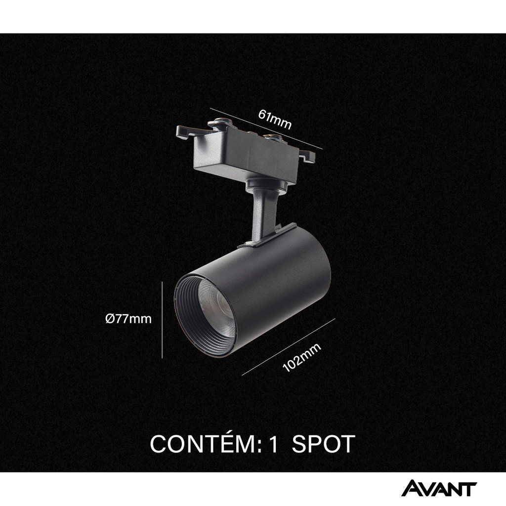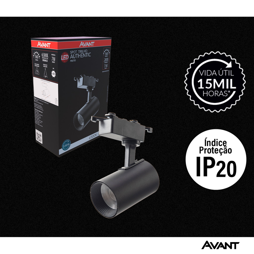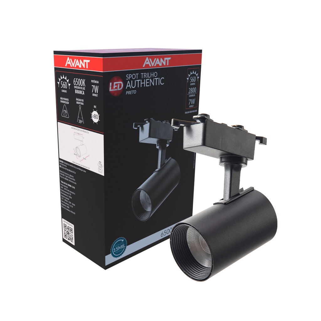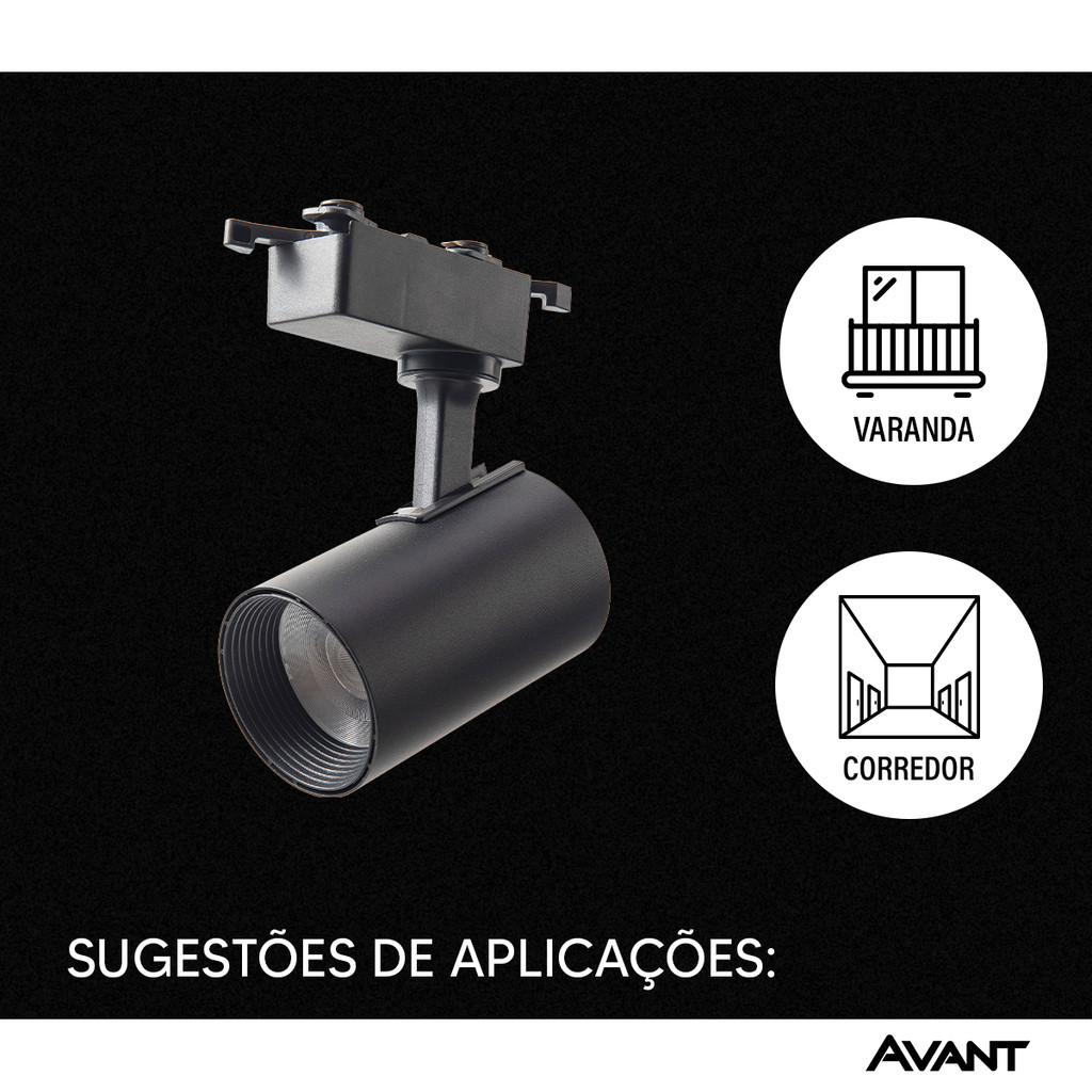 Spot Trilho Led Authentic Preto 7w 560lm 6500k Branco Frio Bivolt IluminaçãoTrilho Avant