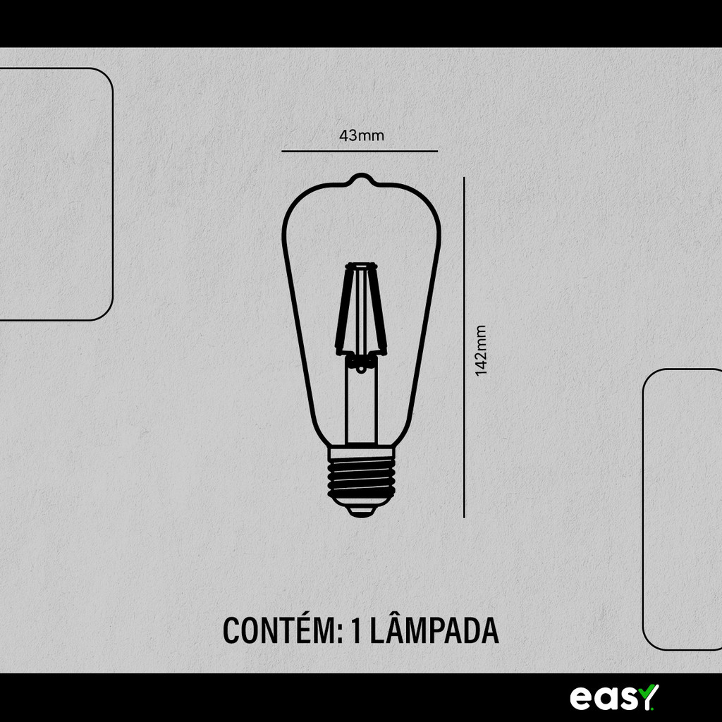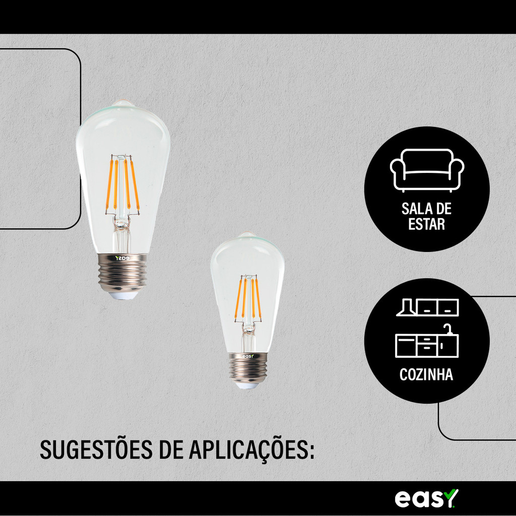 Kit 3 Lampadas Led ST64 Clear 8w Luz Quente 2400k E27 Bivolt 110v/220v Easy