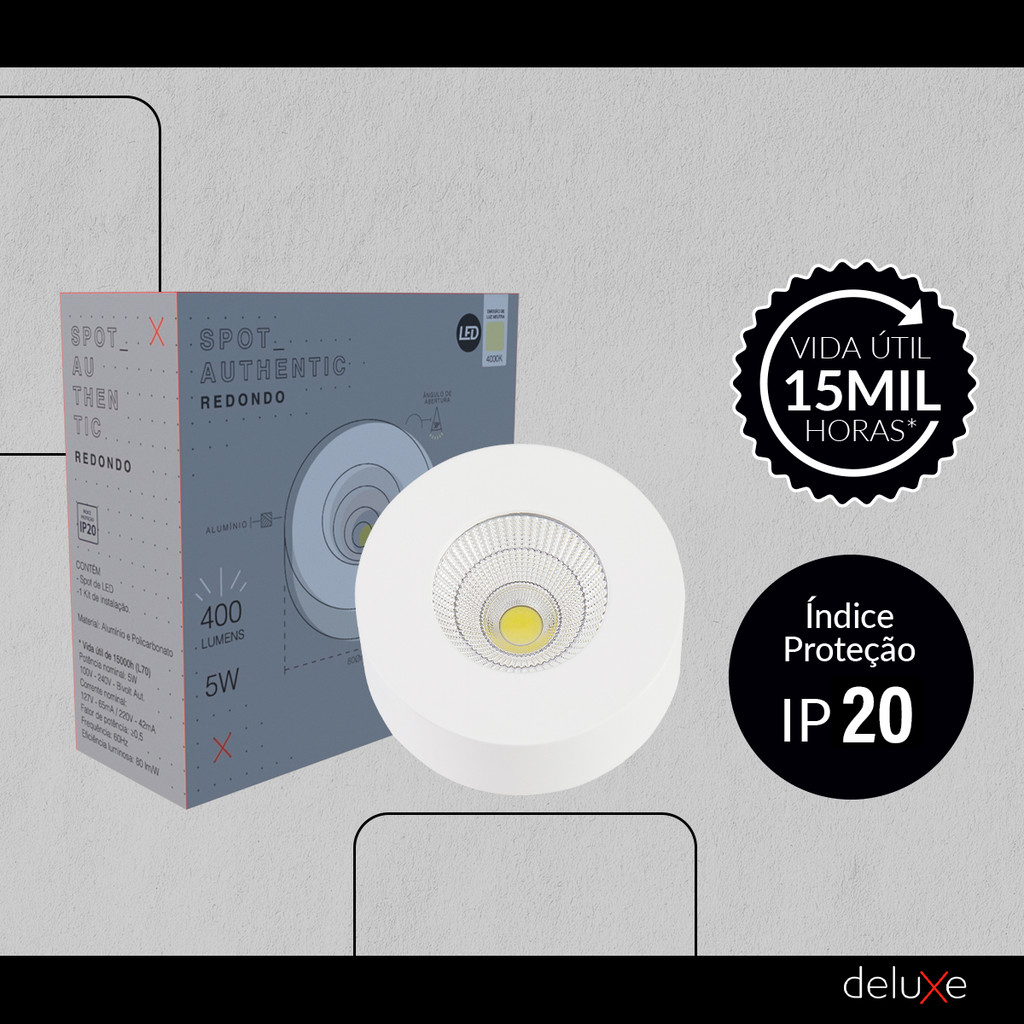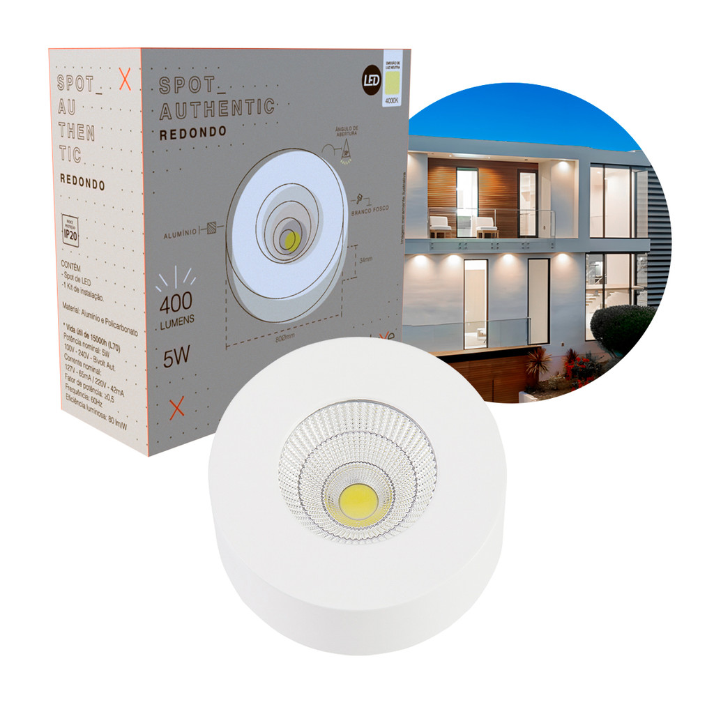Spot Led Authentic Beiral de teto 5w 4000k Branco Neutro 8cm Bivolt Redondo Branco Cod: 907070872 Deluxe By Avant