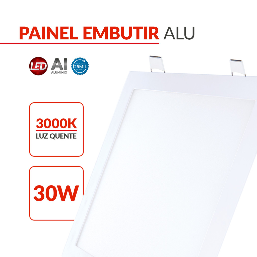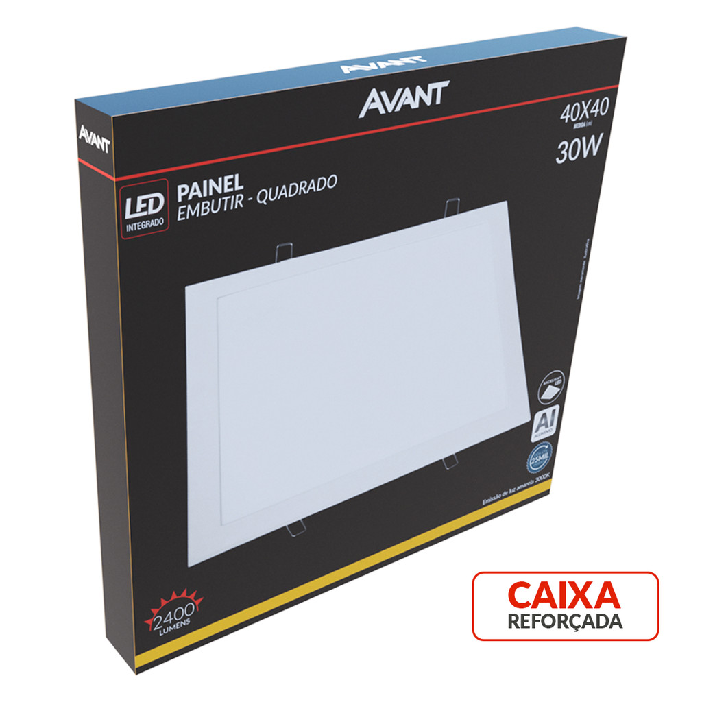 Kit 10 Painel Led Plafon Aluminio Slim Embutir 30w 3000k Branco Quente 40cm 110v/220v Quadrado Cod:858300578-10 Avant