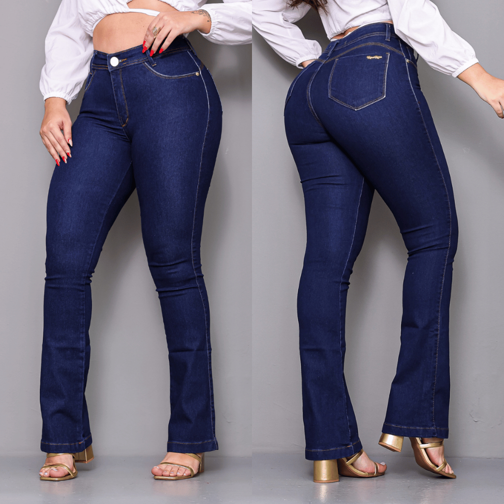 Calça Jeans Flare Feminina Branca Cintura Alta Boca Sino Lycra Modela Corpo Justa Casual Elegante
