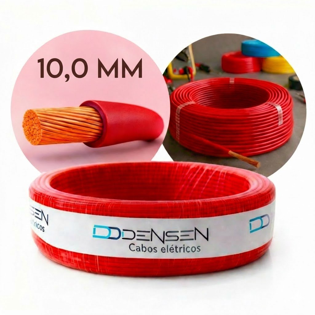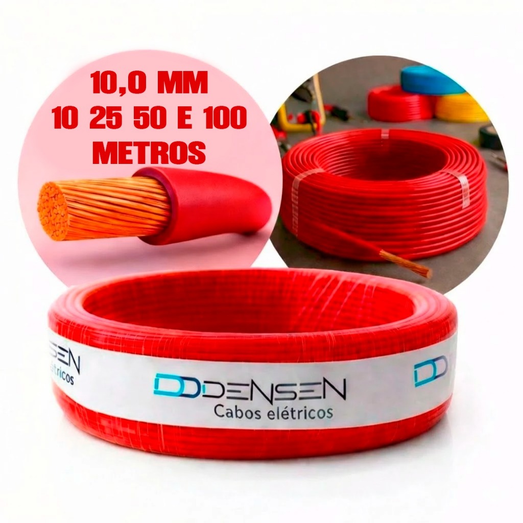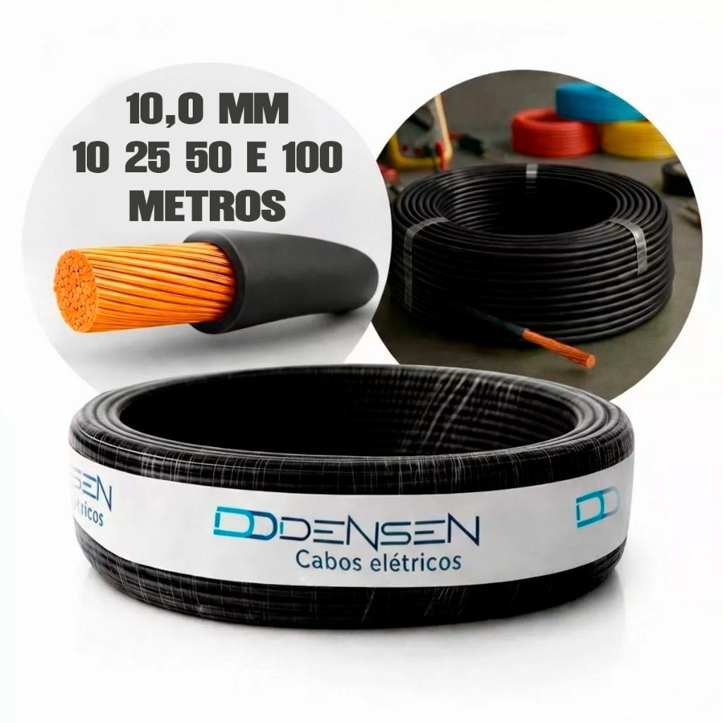 Fio Elétrico 10mm Cabo Flexível Rolo Com 25 50 e 100 Metros Anti-chamas