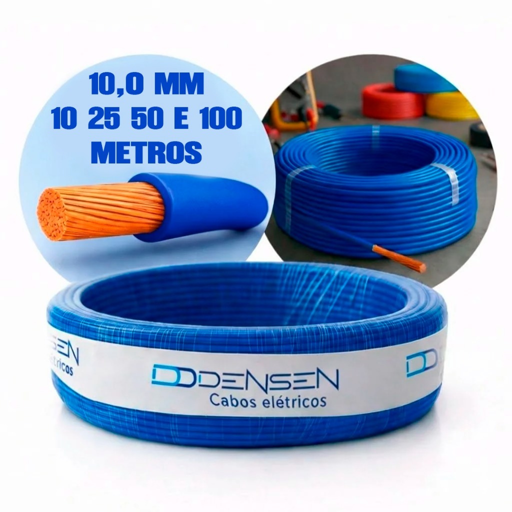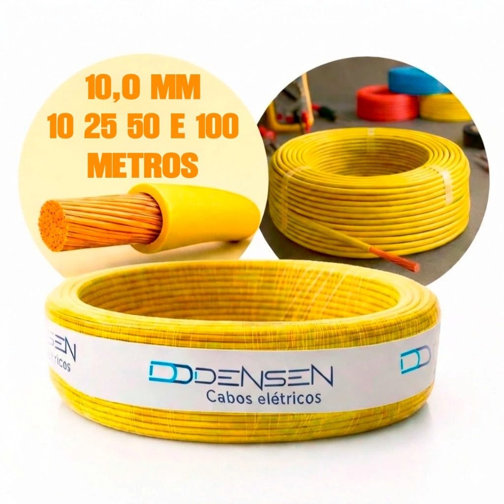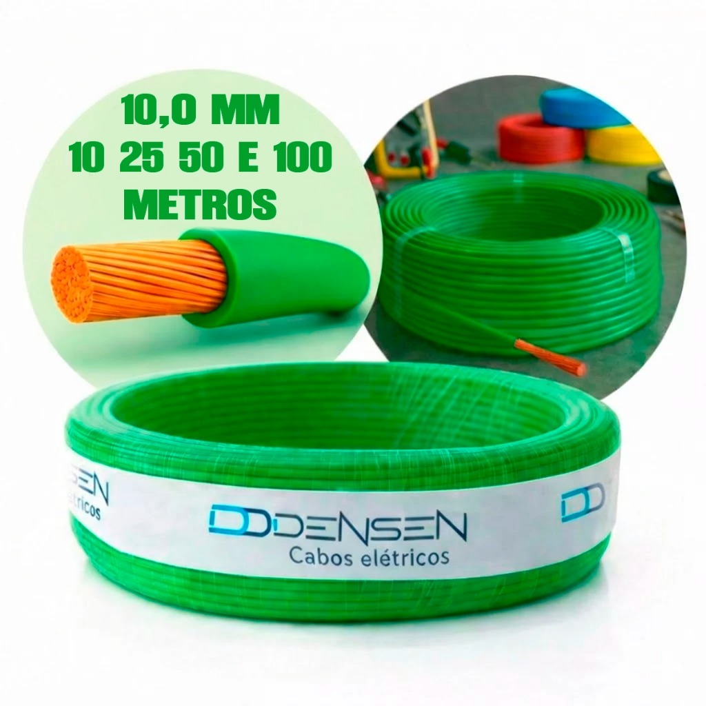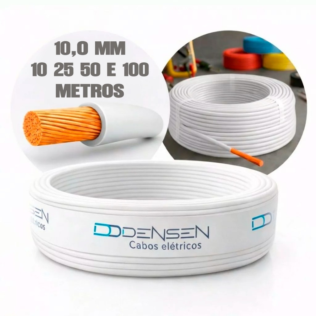 Fio Elétrico 10mm Cabo Flexível Rolo Com 25 50 e 100 Metros Anti-chamas
