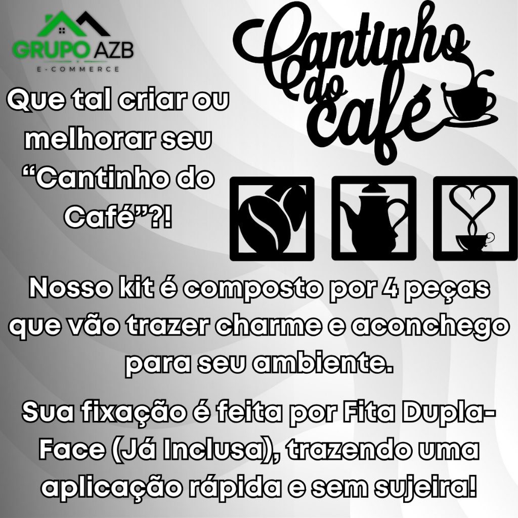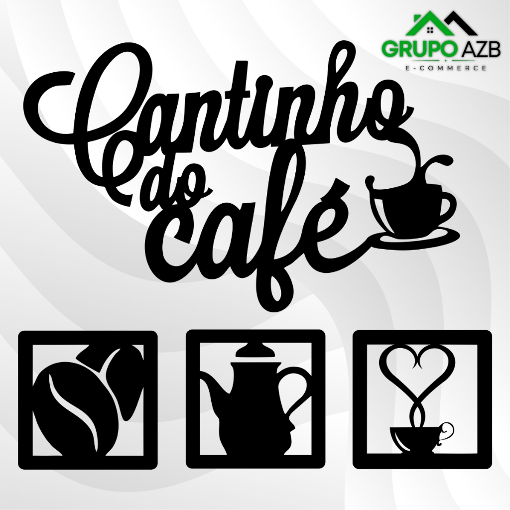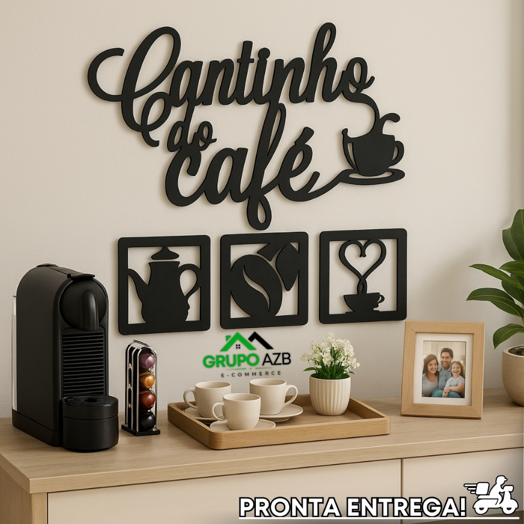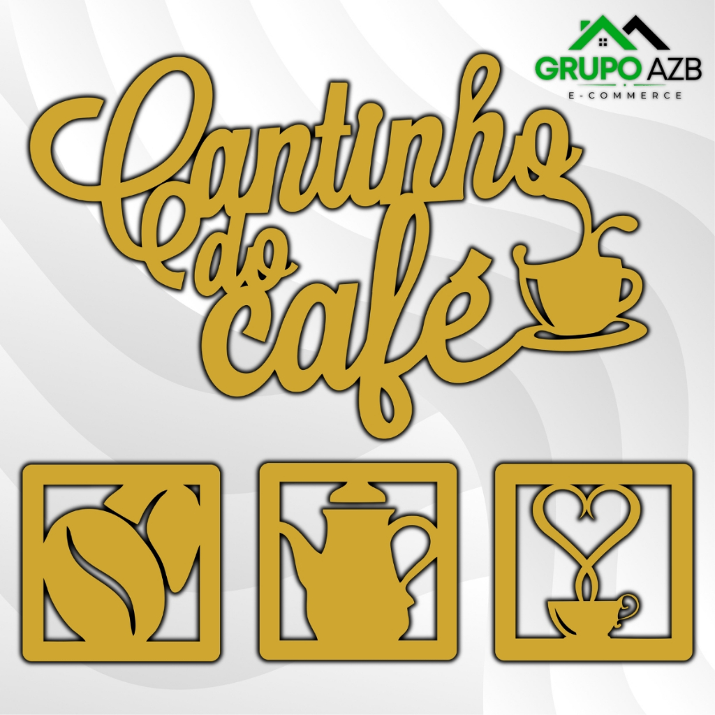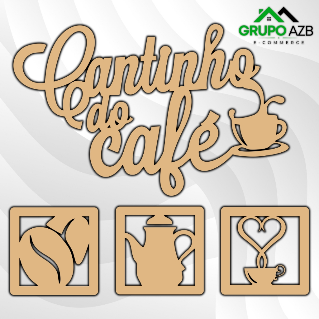 Kit Cantinho do Café MDF 4 Peças | Frase Decorativa + 3 Quadrinhos | Corte a Laser | Pronta Entrega