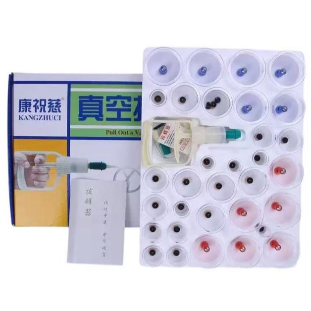 Kit 24/32 Peças Ventosas a Vácuo Com Bomba de Sucção Para Ventosaterapia/Acunputura/Massagem