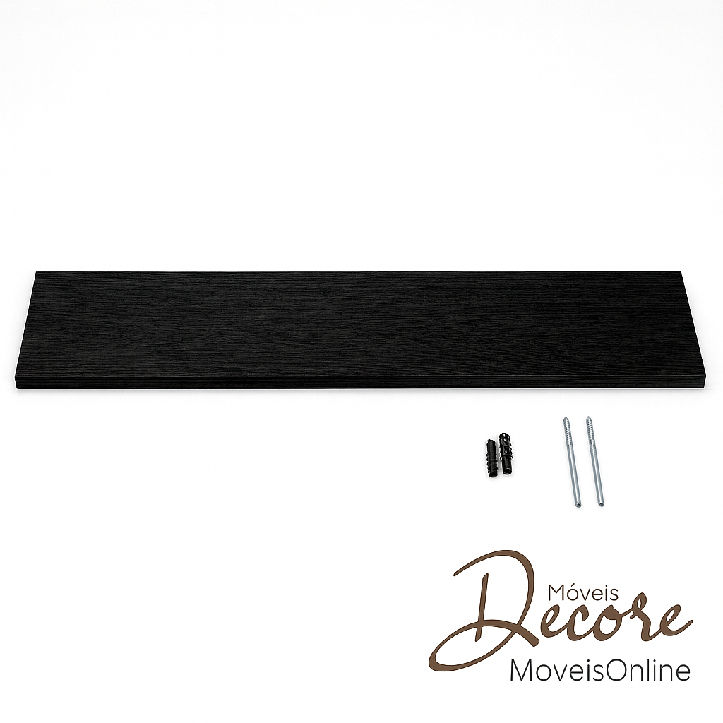 Prateleiras pretas 120x20cm com Suporte Invisível MDF –Moderna, Ideal para Sala, Cozinha e Quarto