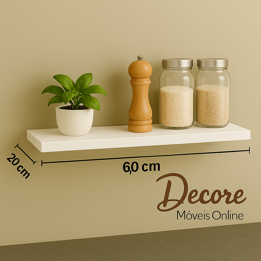 Prateleira Branca 60x20 cm em MDF, suporte invisível, Banheiro, Cozinha, Lavanderia e Escritório