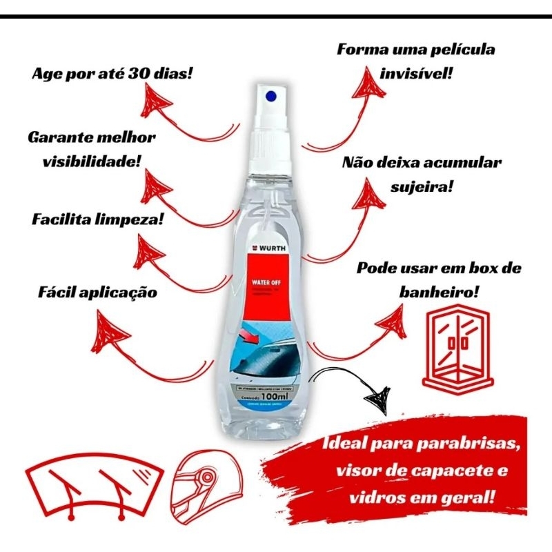 Cristalizador Vidros Parabrisa - Water Off 100ml - Wurth