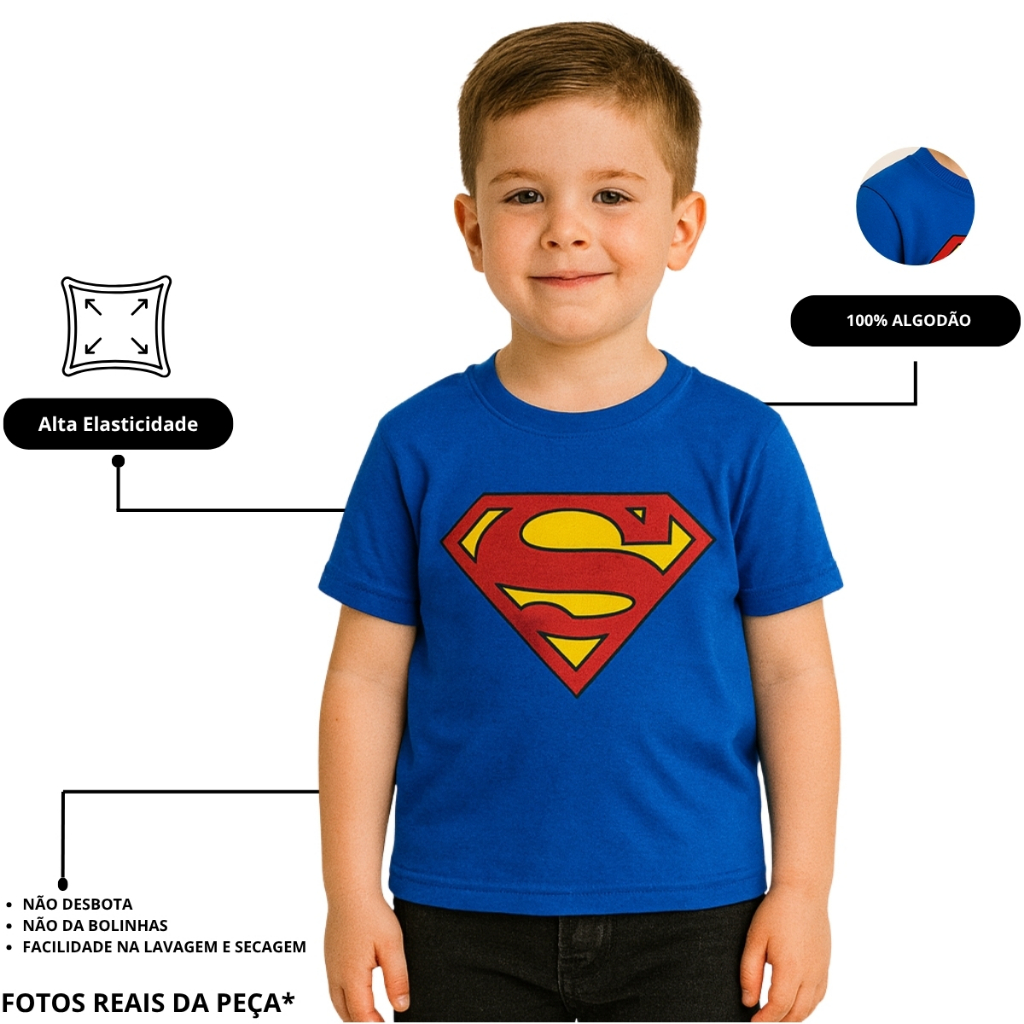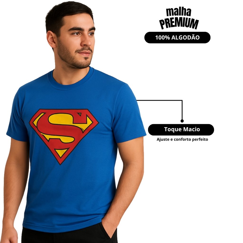 Camisa Unissex Com Estampa Superman 100% Algodao Adulto Infantil