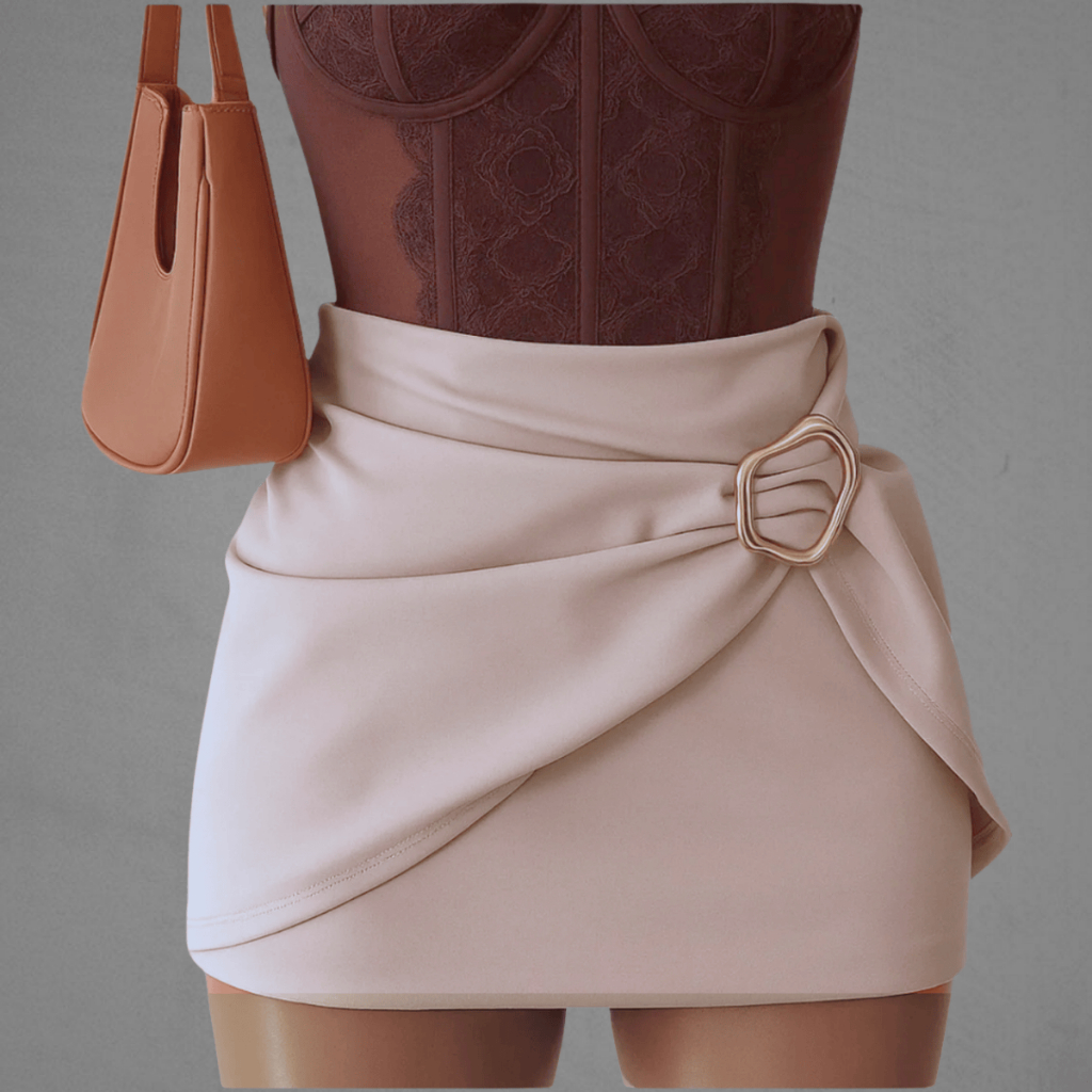 Short Saia Feminino Cintura Alta Detalhe Fivela Sexy Moda Blogueira Elegante Confortável Neoprene