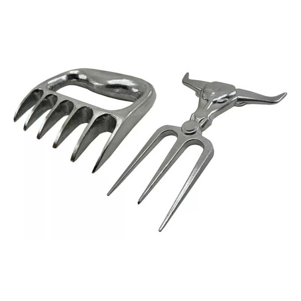 Kit Tabua De Carnes para Churrasco Rustica Com Gaveta E Garras Urso Tridente