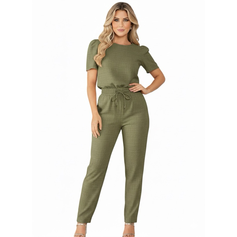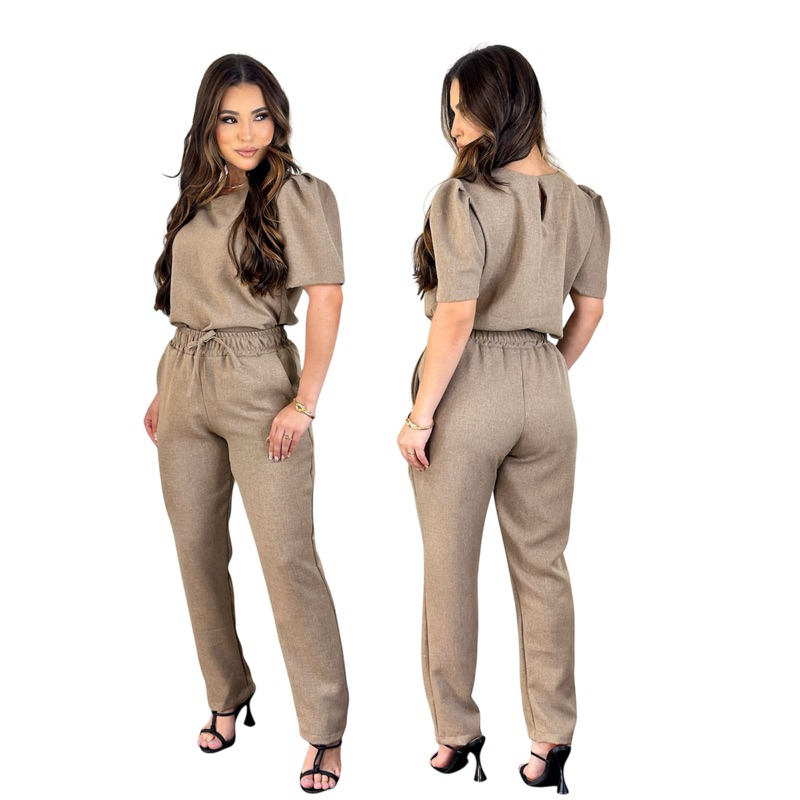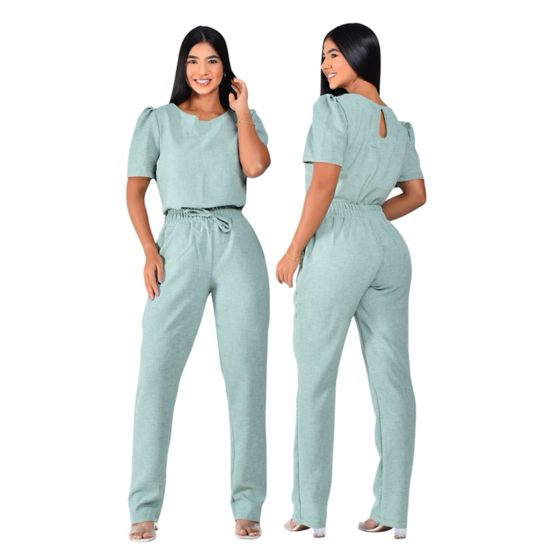 Conjunto Feminino Confortável Blusa e Calça Scrub Uniforme linho rústico Elegante Alfaitaria Scrub