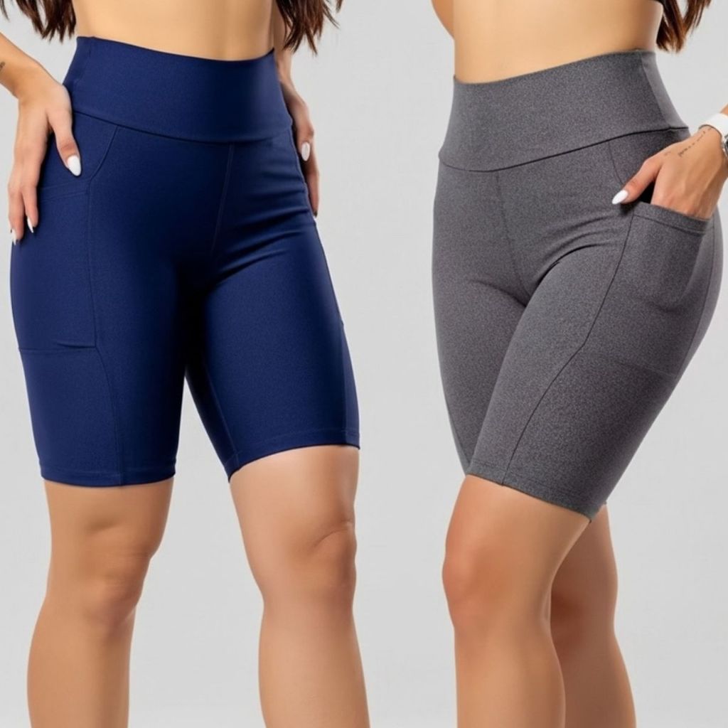Kit 2 Bermuda ciclista academia Feminina com bolso laterais zero transparência