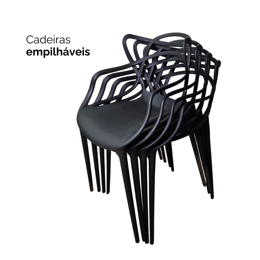 Kit 03 Cadeiras Allegra Polipropileno Empilhável Preto Sala Jantar Área Gourmet Cozinha Oferta