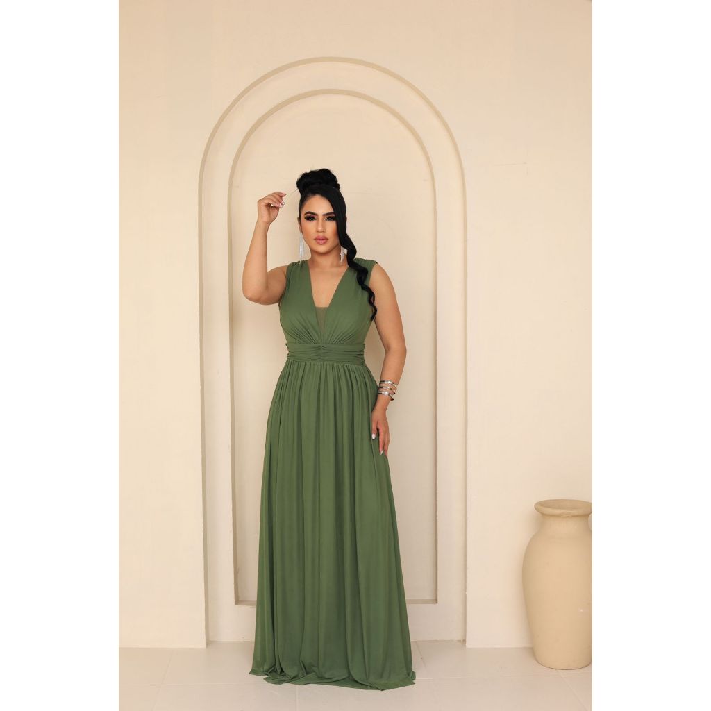 Vestido Para Festa longo Com Decote V Renda regata,Convidadas, Madrinha, Formatura, Casamento .