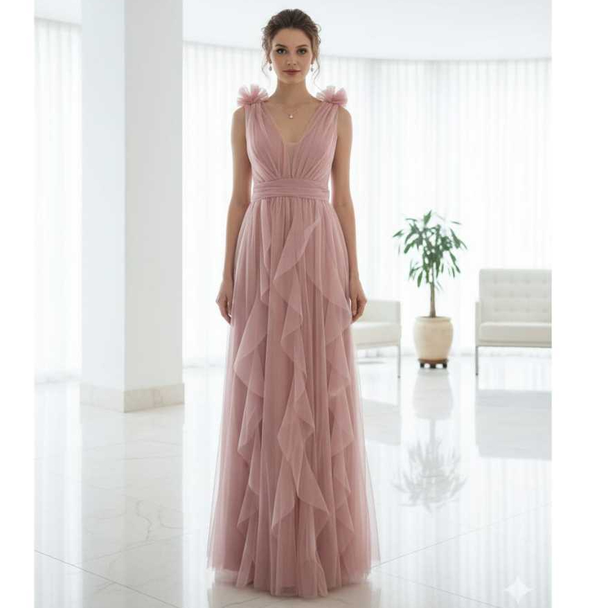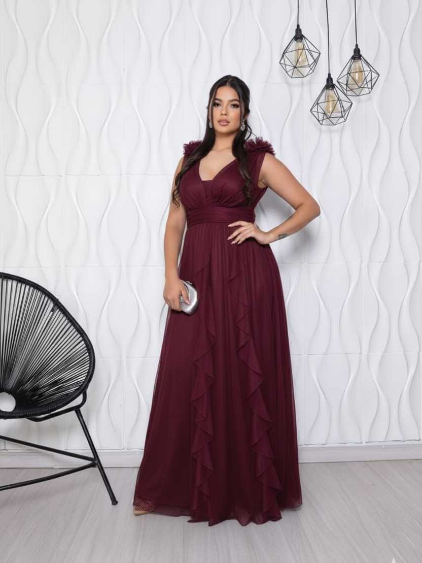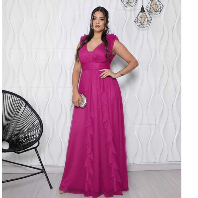Vestido Luxo Festa Madrinha Longo Saia em Camadas Formatura Casamento Convidadas Elegante