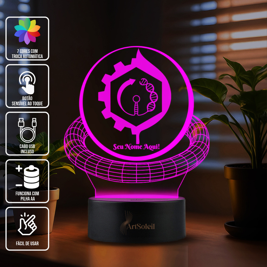 Luminária LED 3D De Mesa - Bioquímica - PREMIUM - Personalizada - Presente Criativo Luxo