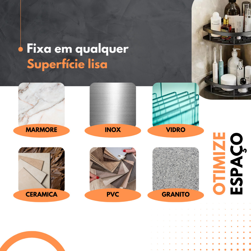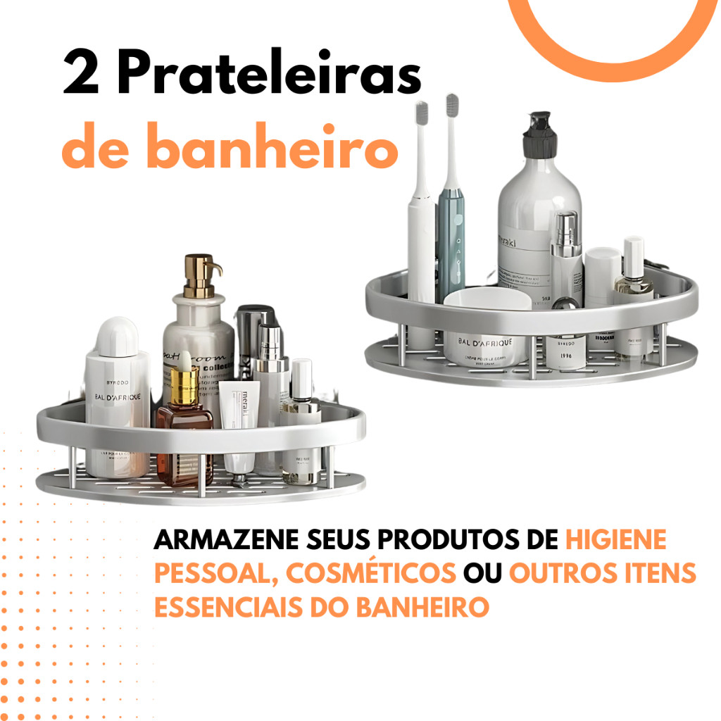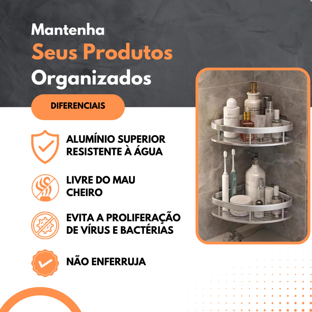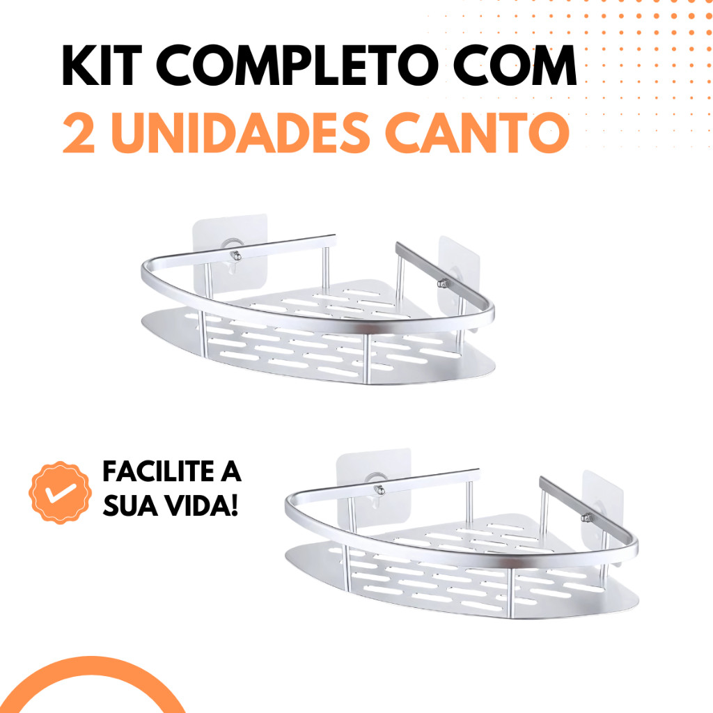 KIT 2 PRATELEIRAS PARA BANHEIRO CROMADO SUPORTE PARA SHAMPOO TRIANGULAR PRATEADO ALUMINIO DE CANTO