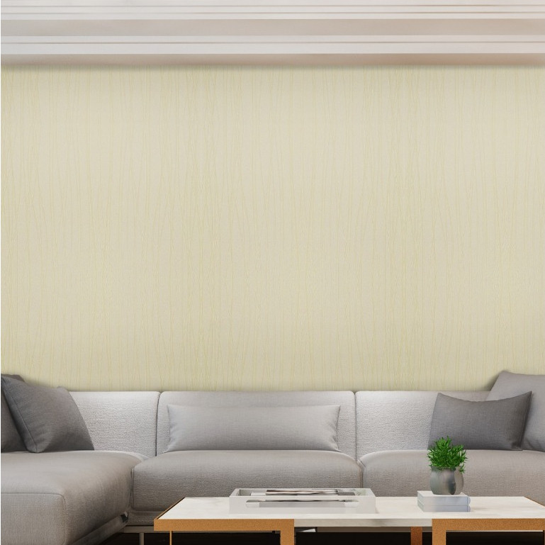 Papel de parede autoadesivo listrado bege para sala e quarto