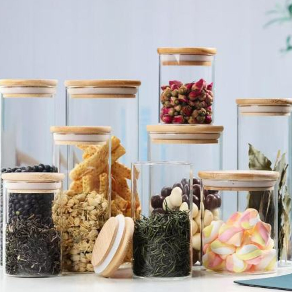 Kit Potes de vidro herméticos com 8 ou 13 potes Tampa Bambu