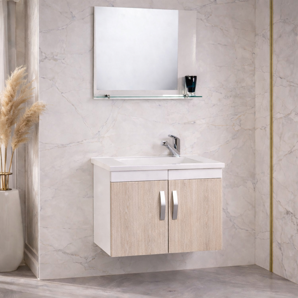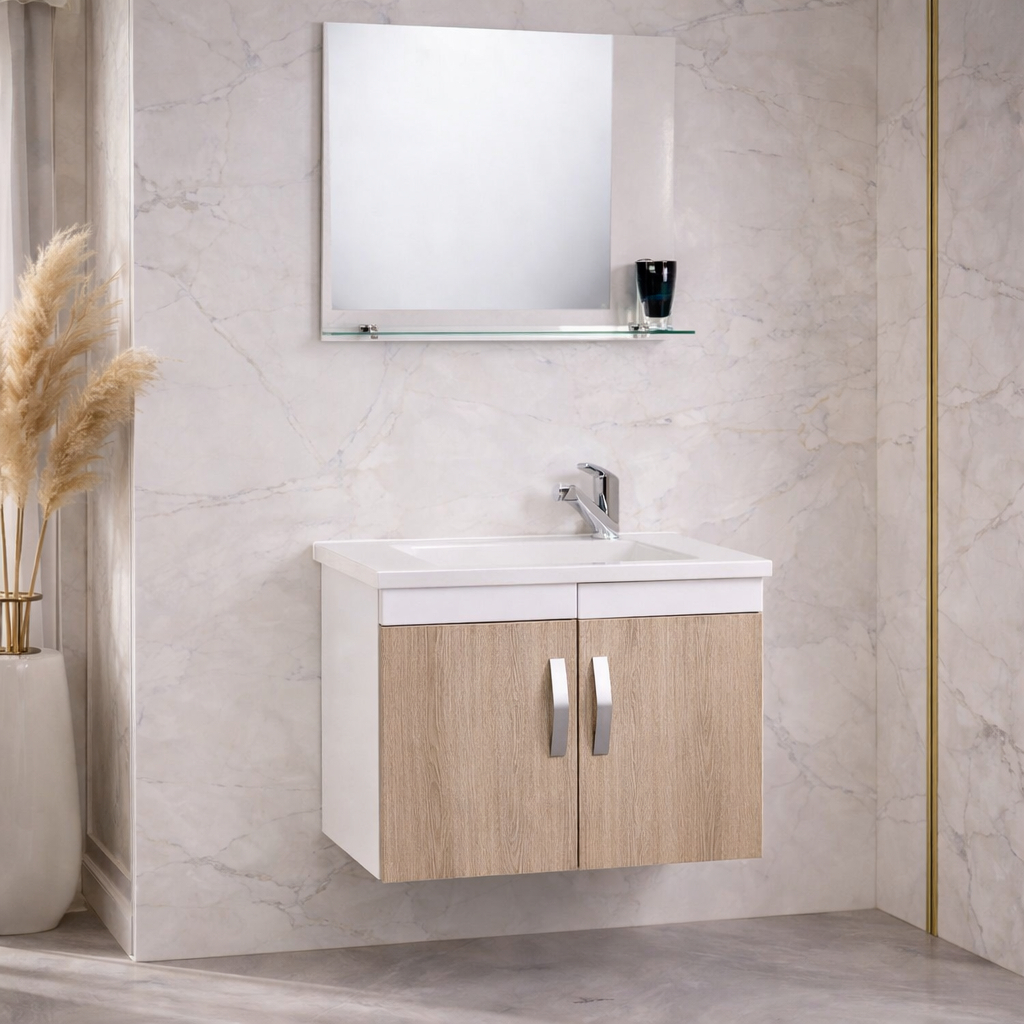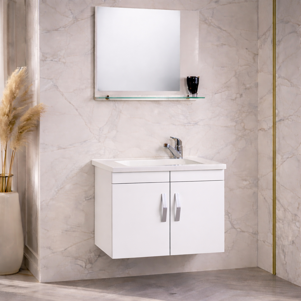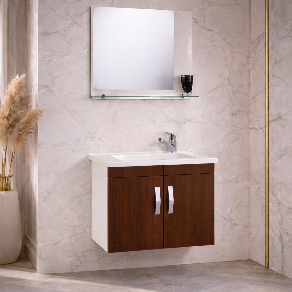 Kit Conjunto Gabinete Banheiro em MDF C/ Espelho e Cuba Armário Organizador Móvel Balcão 2 Portas