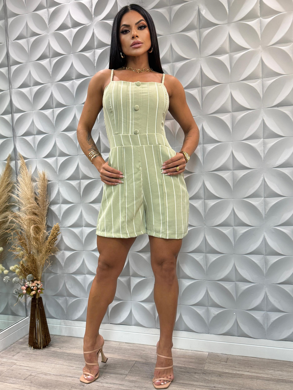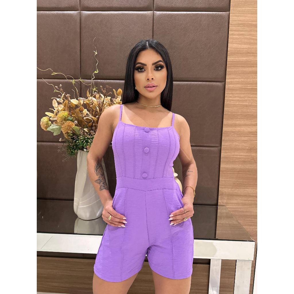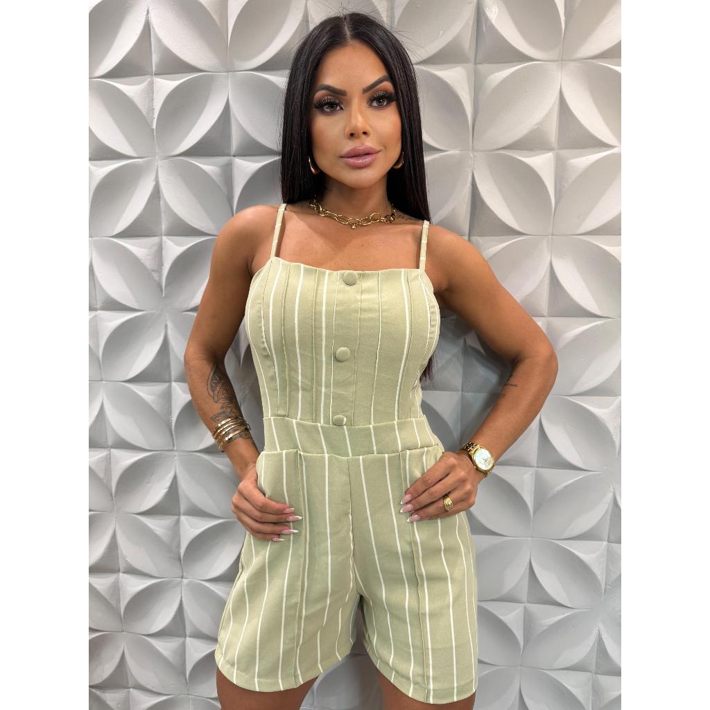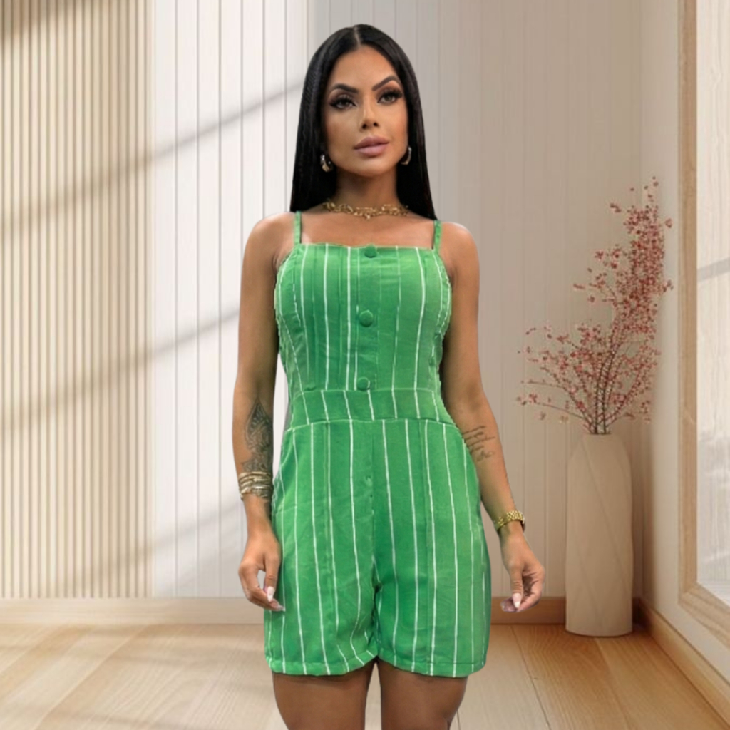 Macaquinho curto feminina com botões de alça regulador para mulheres