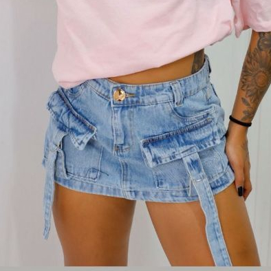 Shorts Saia Cargo Jeans Grafite Feminino Moda Verão