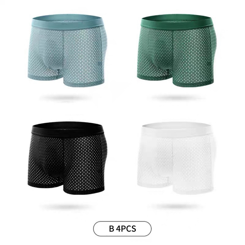 4 Kit Cueca Boxer dos homens de Verão Roupa Interior dos homens Malha Completa Respirável AA Cuecas De Bambu Conjunto