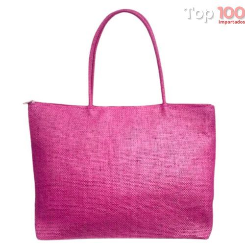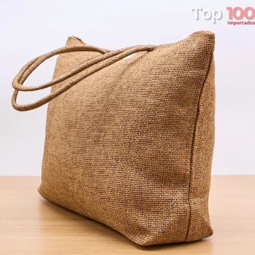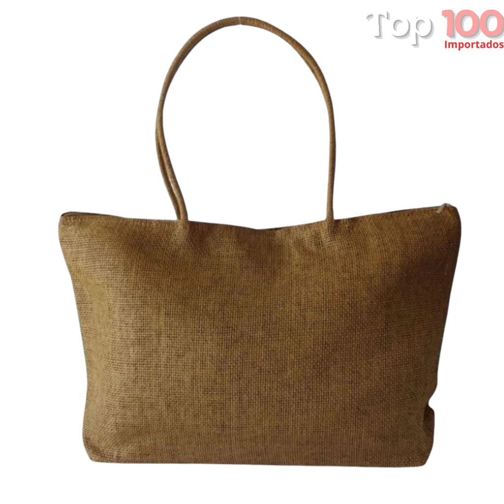 Bolsa Sacola De Praia De Palha Artesanal Com Zíper E Bolso Interno Para Personalizar Grande A001