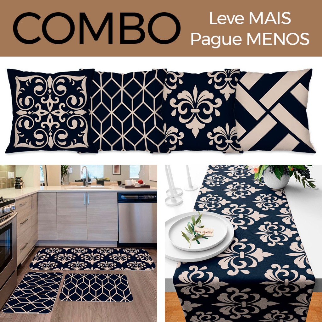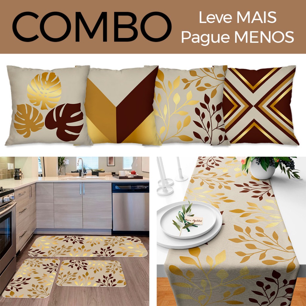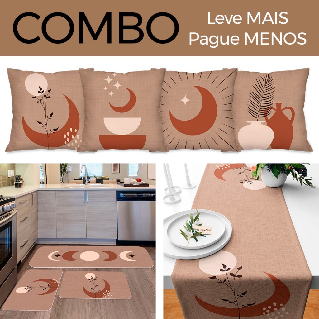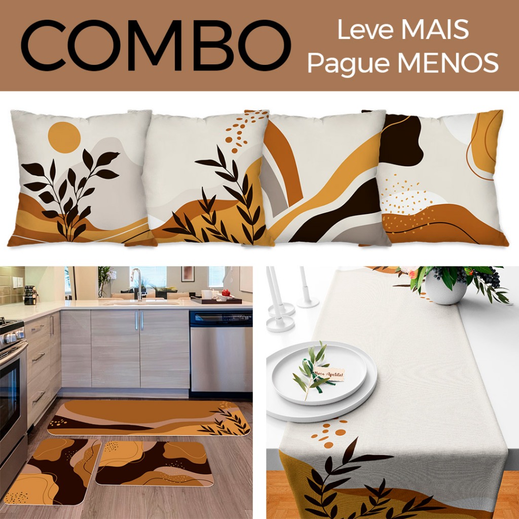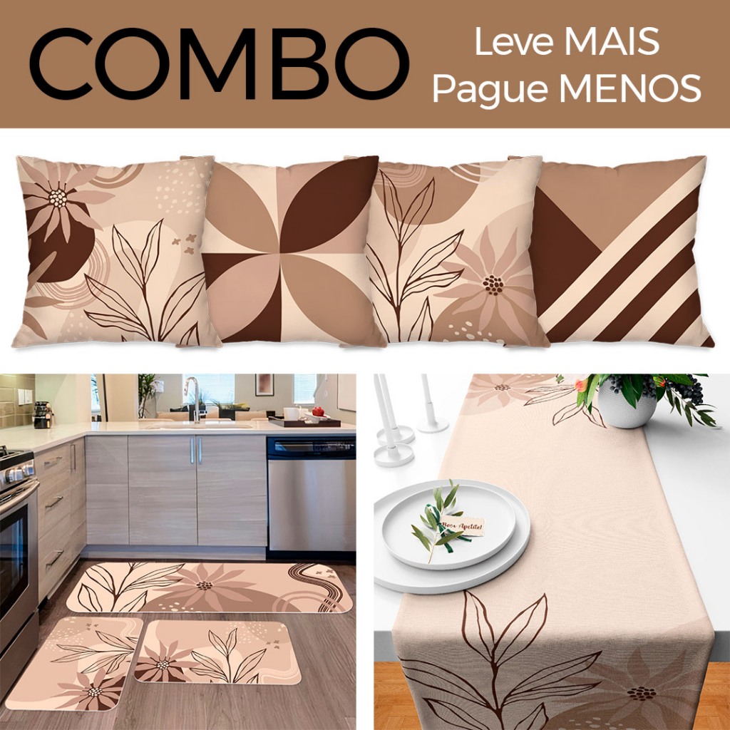 COMBO DECORAÇÃO: Kit com 4 Capas para Almofadas + Kit com 3 Tapetes para Cozinha + Trilho de Mesa 05