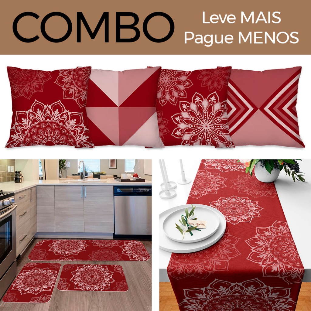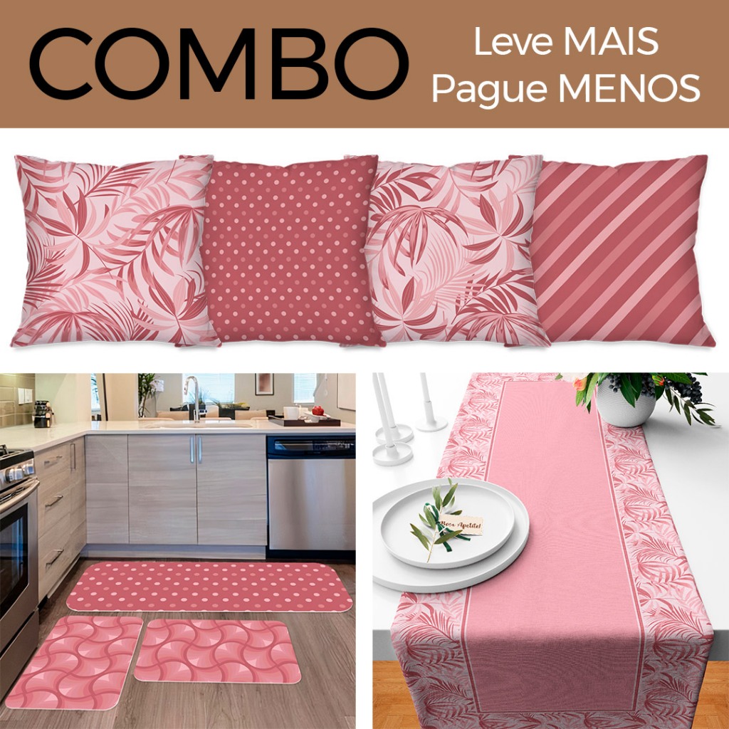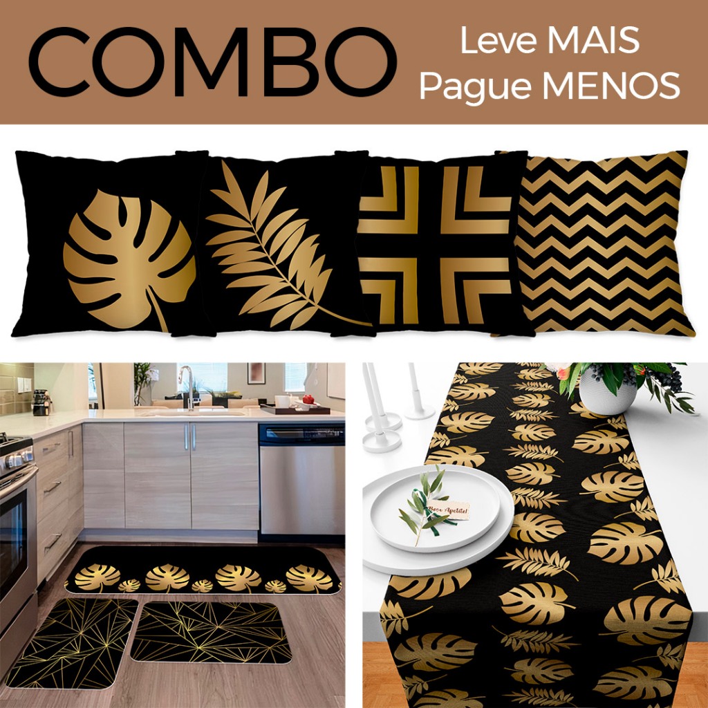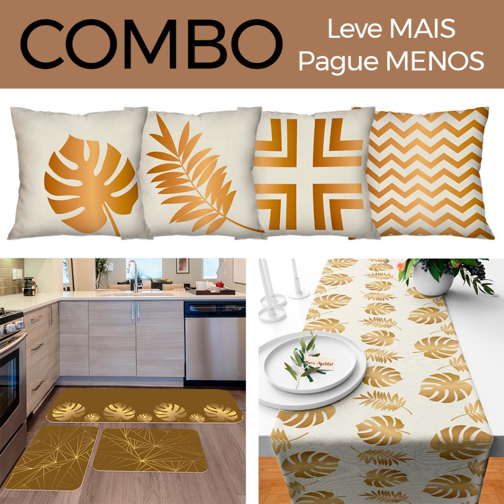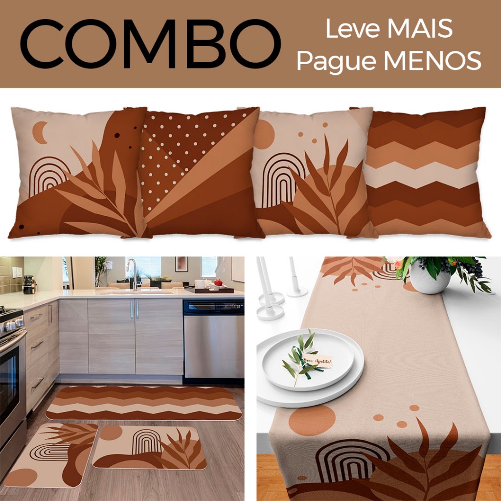 COMBO DECORAÇÃO: Kit com 4 Capas para Almofadas + Kit com 3 Tapetes para Cozinha + Trilho de Mesa 05