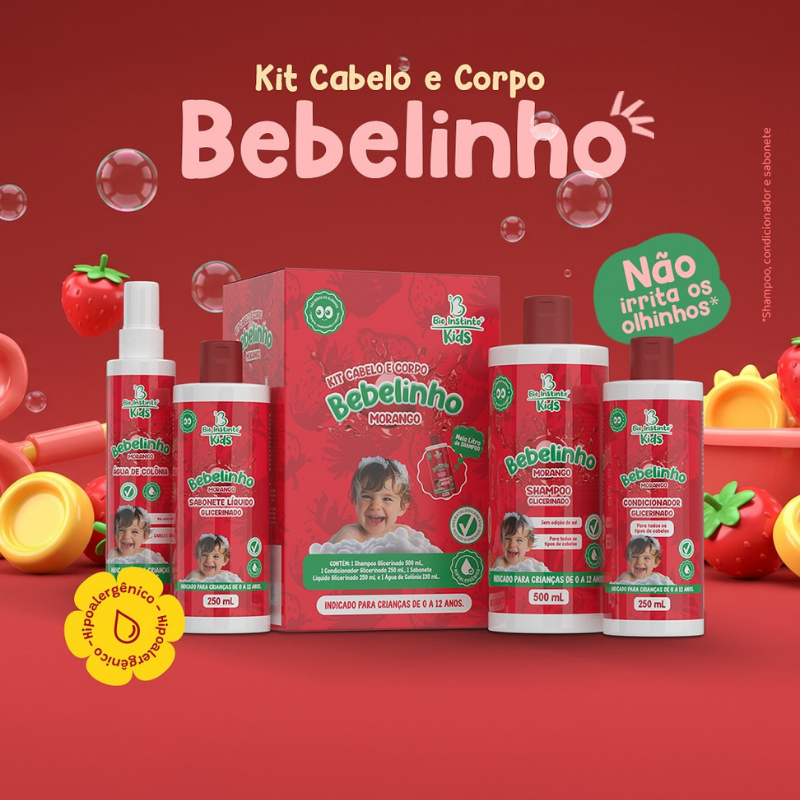Kit Infantil Bebelinho de Morango Cabelo e Corpo Bio Instinto - 4 Itens