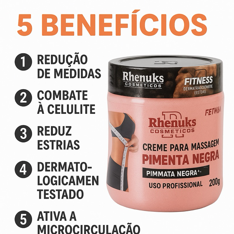 Gel Redutor de Medidas Creme Massageador Para Emagrecer 200g Pimenta Negra