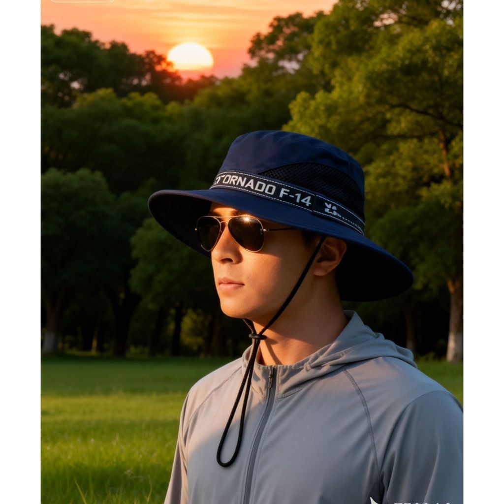 Chapéu Masculino Aba Larga para Trilha e Pesca Leve Respirável e Ajustável