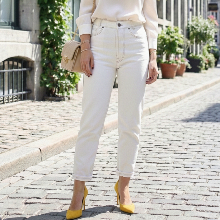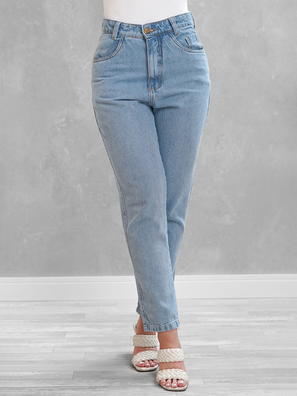 Calça Jeans Feminina Mom Marmorizada Cintura Alta 100% Jeans Grosso Confortável