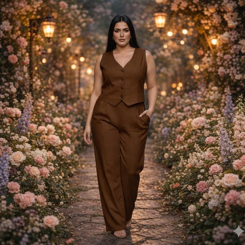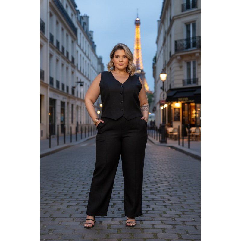 Conjunto Plus Size Alfaiataria Feminino – Colete + Calça Estruturada BH um