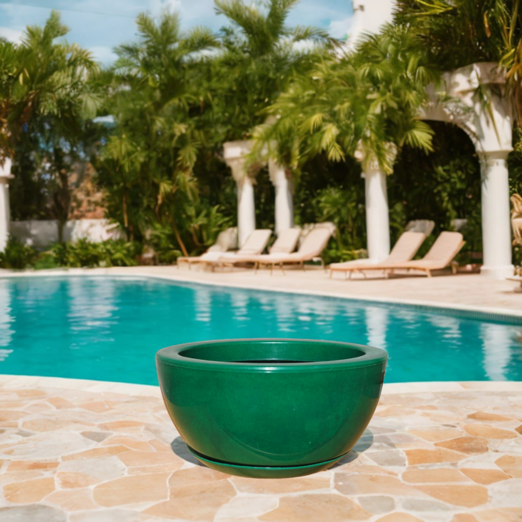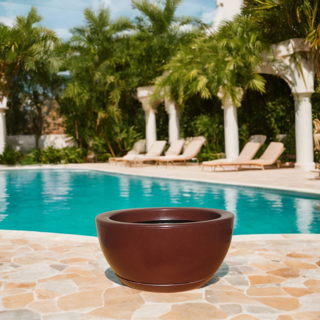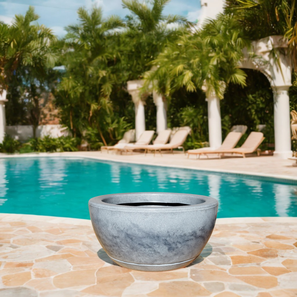 vaso para planta bacia polida e marmorizada com prato N1(1043)