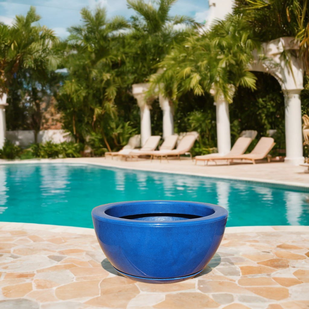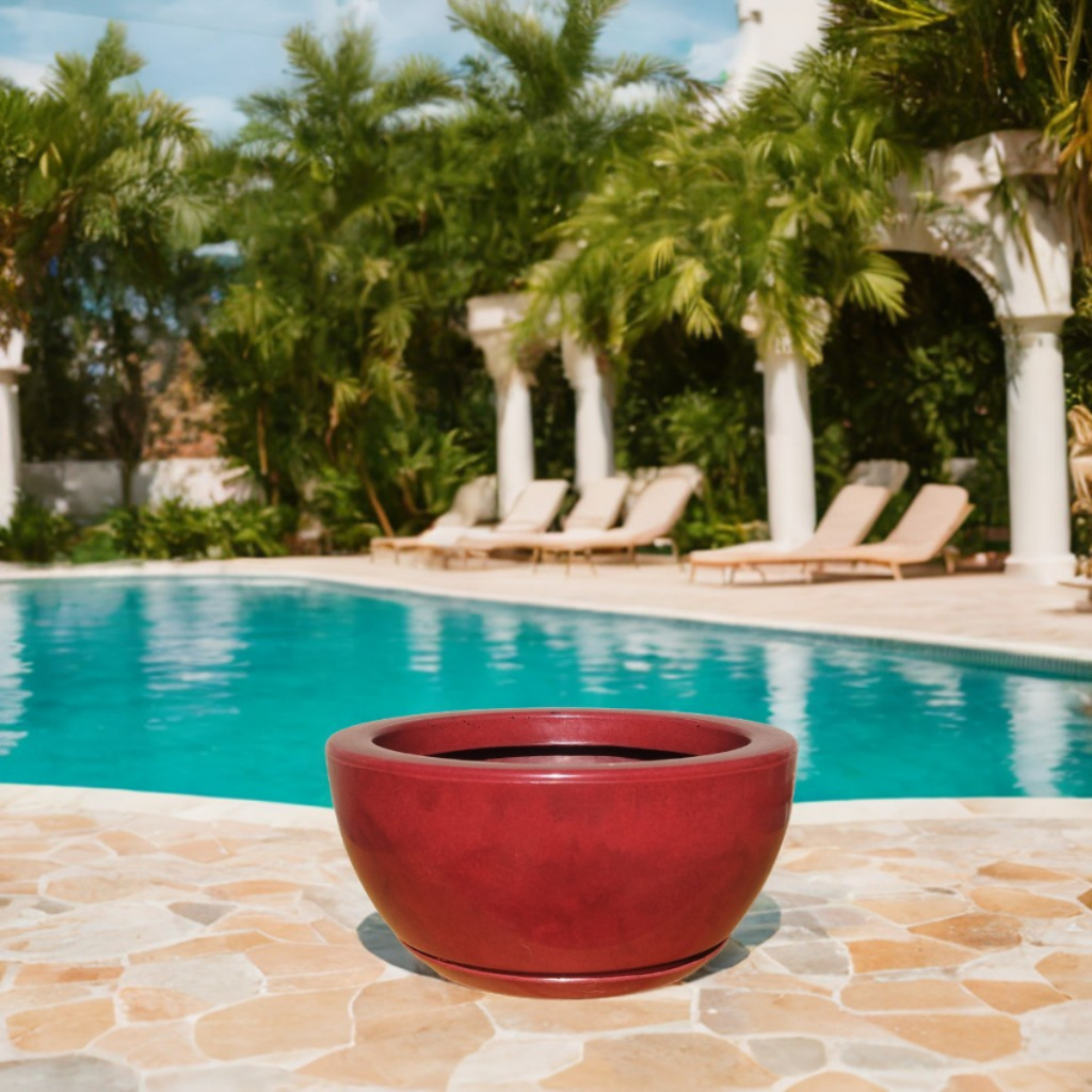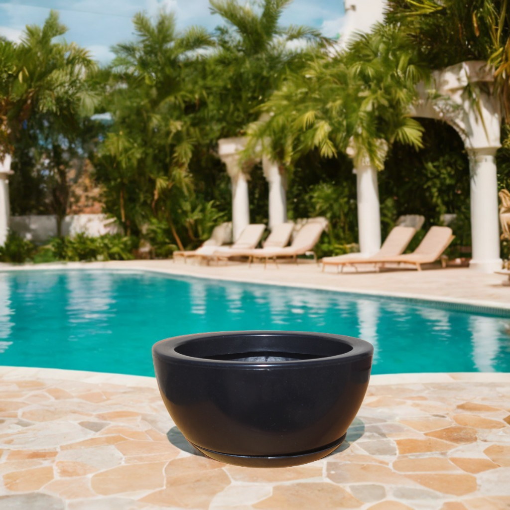 vaso para planta bacia polida e marmorizada com prato N1(1043)