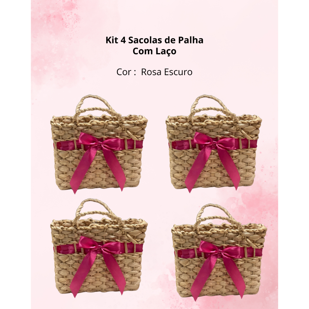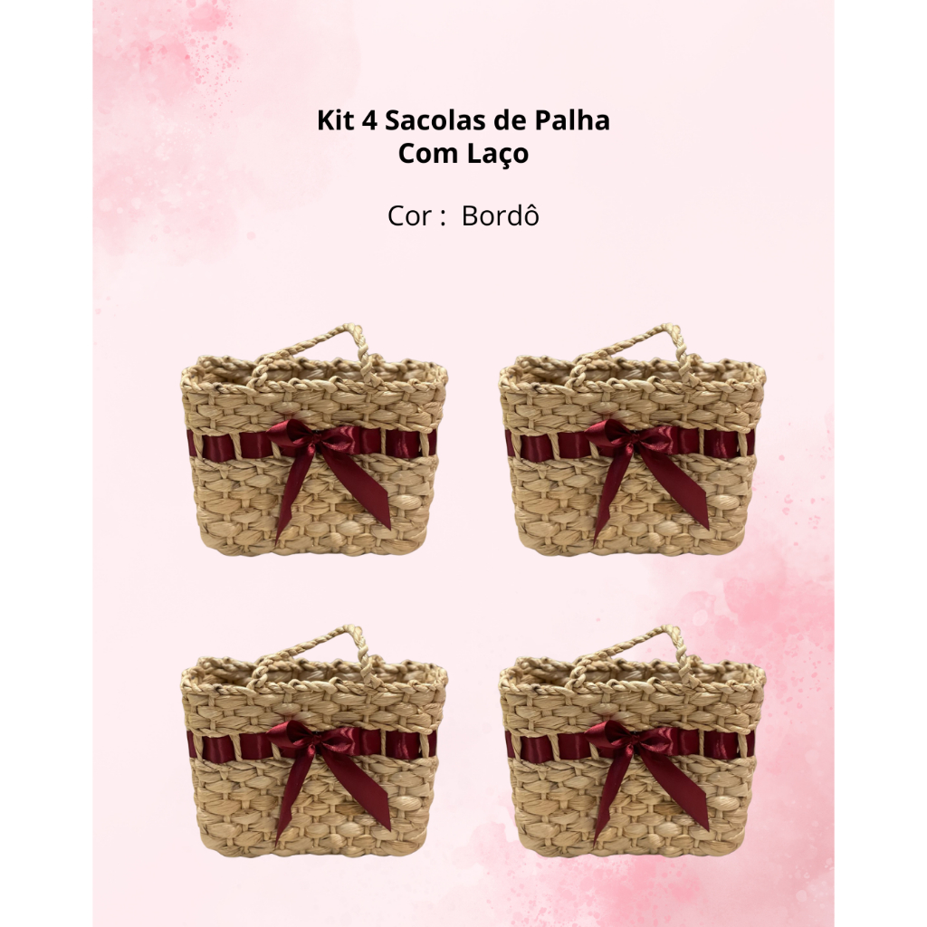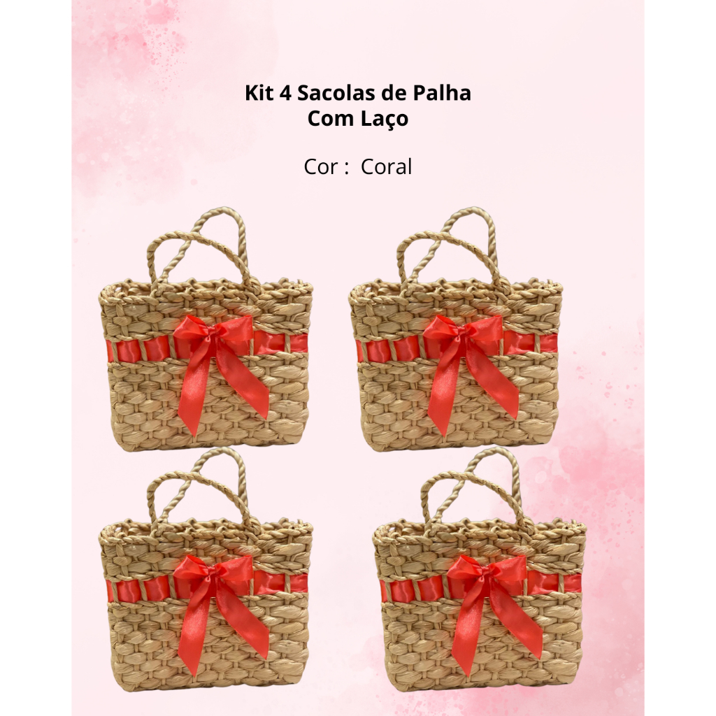 4 Sacolas Bolsas de Palha para Feira ou Praia Pequena com e sem laço