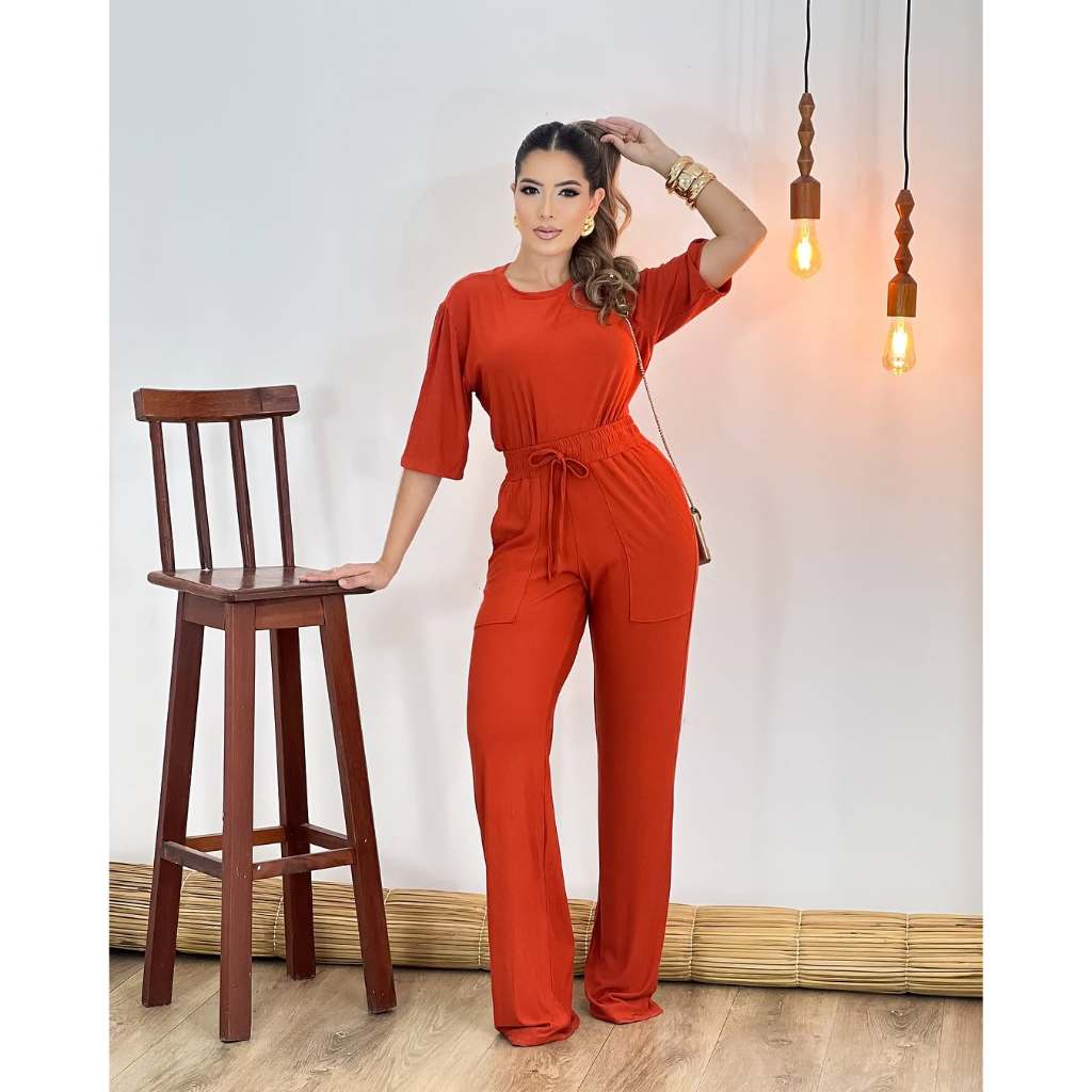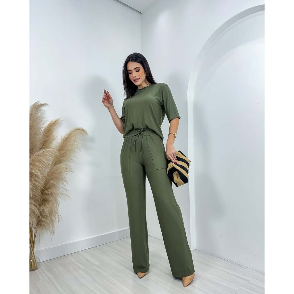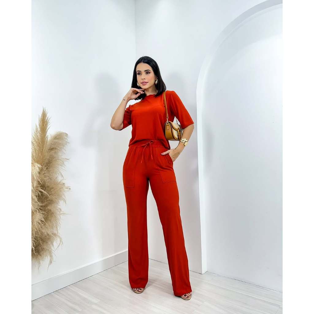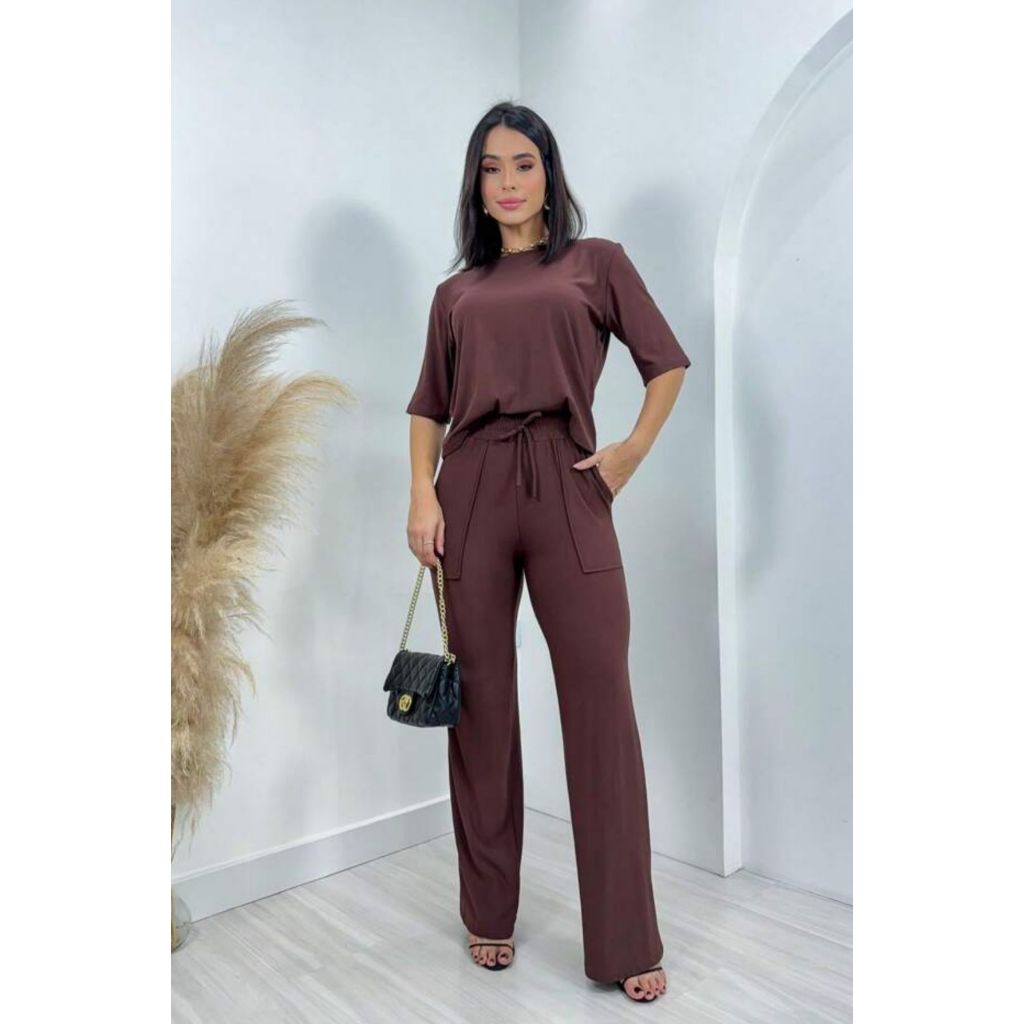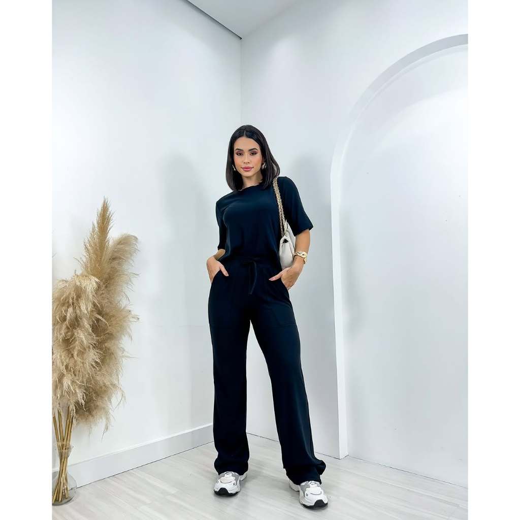 Conjunto de Moletinho Premium Calça Pantalona Blusa Mullet Manga Curta