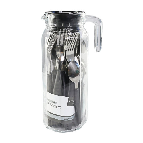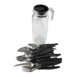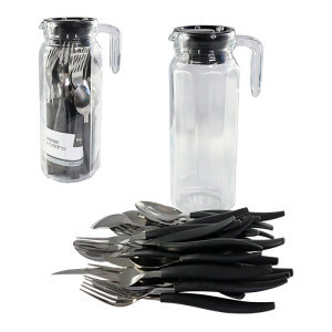 Conjunto de Talheres Preto 24 Peças com Jarra de Vidro