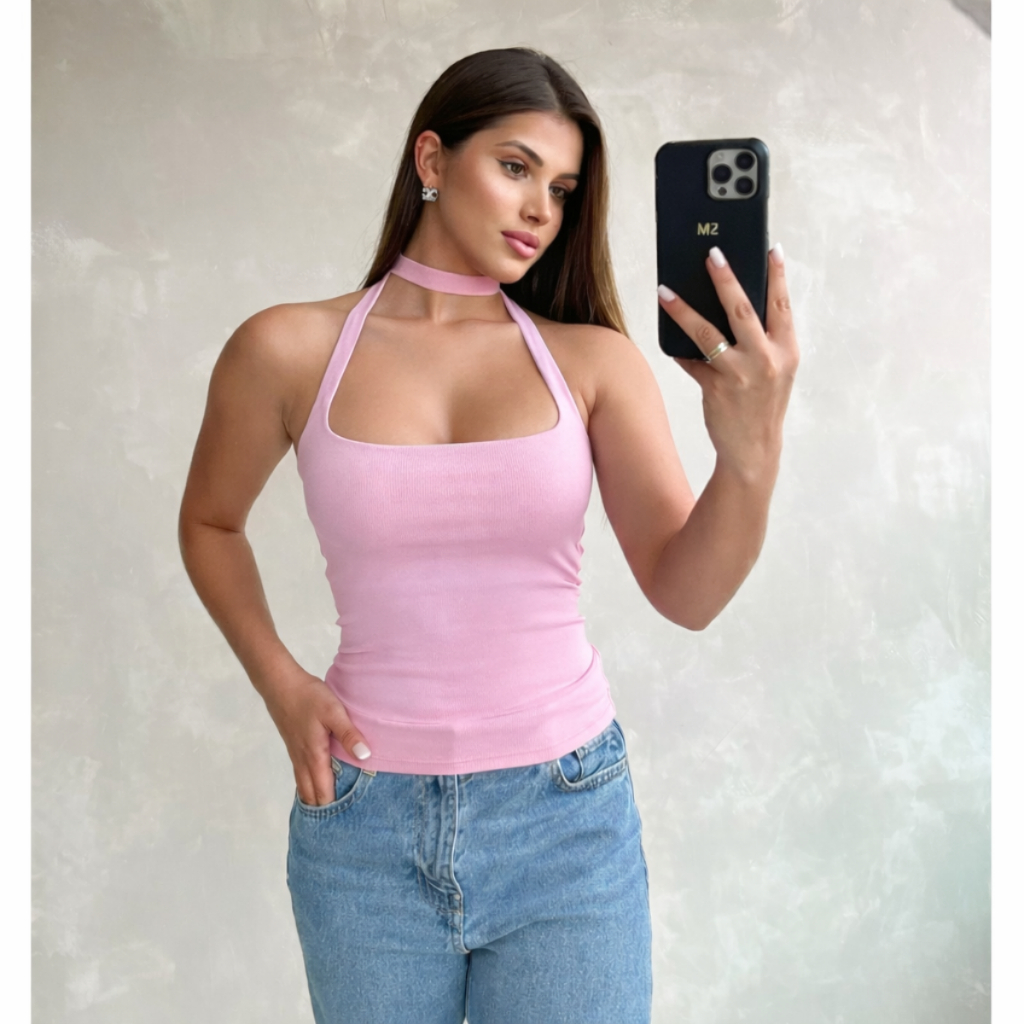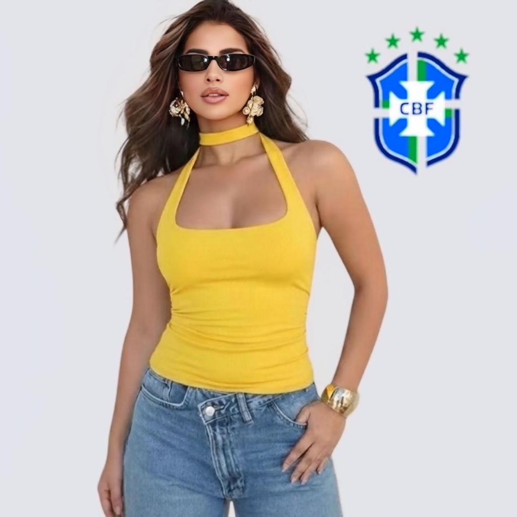 Cropped Blusa Amarração Feminina Moda Gringa Decotado Suplex Premium