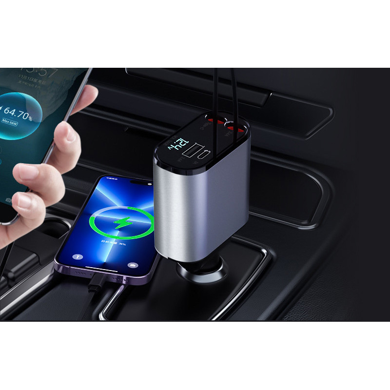 Carregador de carro retrátil Carregador Turbo De Carro Retrátil Type-c Lightning 45w Pronta Entrega