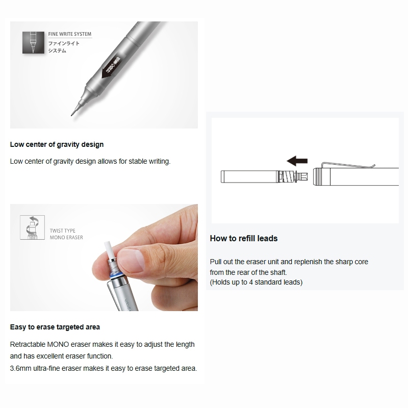 Lápis Mecânico Fino Tombow Mono Graph 0.5 Mm Prata/Preto/Marinho/Verde [Fabricado No Japão]