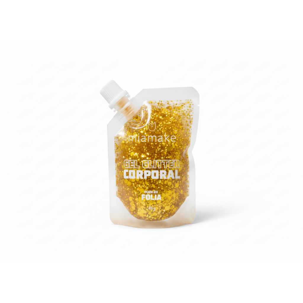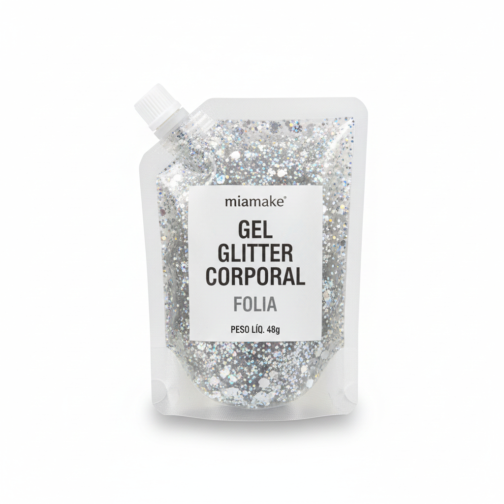 Gel Glitter Corporal - Folia Mia Make 48g - Brilho Intenso Carnaval - Secagem Rápida